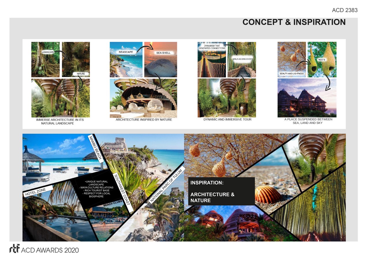 The architecture inspired by nature… by seascape, seashells. Dynamism which generates connections between us and Mother Nature. The beauty and agility of nests… All these elements create a magical place, suspended between sea land and sky.
