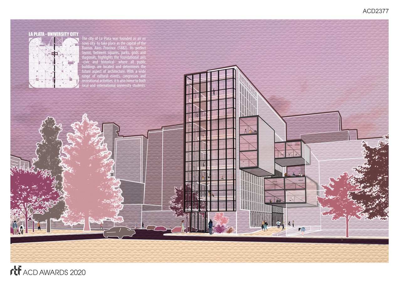 The project located in the city of La Plata (founded as a city ex novo to take place as the capital of the province of Buenos Aires – 1880) is typologically adapted in the form of a strip to the terrain of narrow proportions on the guidelines imposed by the laws of Indies in the city.