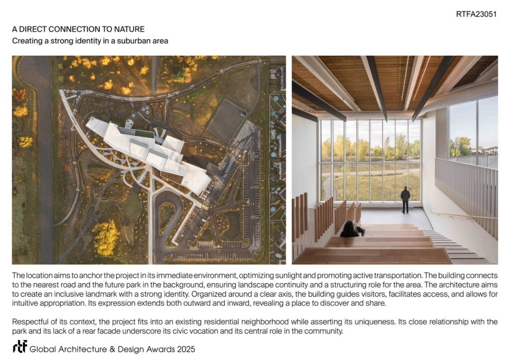 Built on a 13-acre site that once housed a petrochemical plant, the Espace citoyen des Confluents embodies a true urban, social, and environmental renaissance. It meets an essential need for public infrastructure in the neighborhood by providing the community with a library, meeting spaces, a multifunctional auditorium, and a police station.