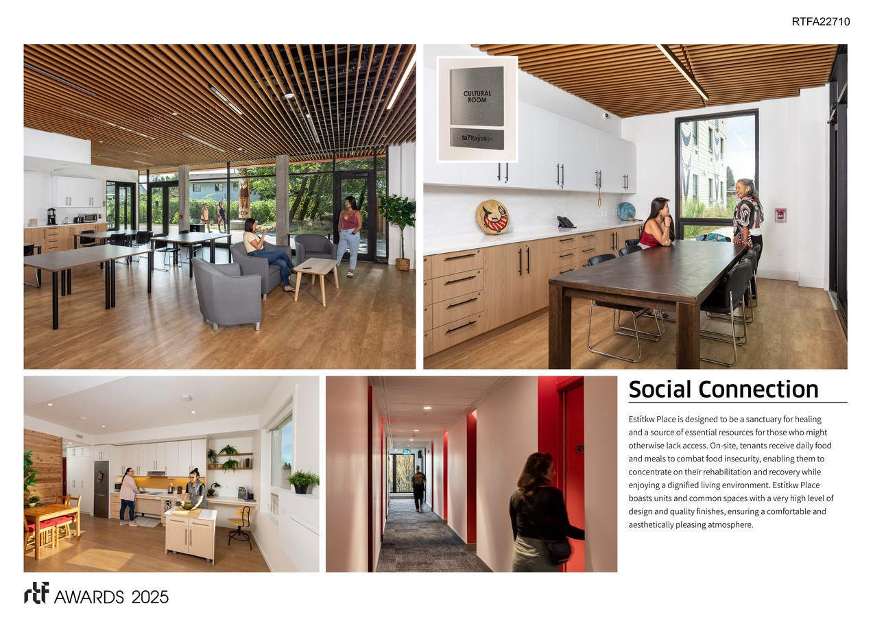Estítkw Place is intended to be a location for healing and providing resources for those who may not have access otherwise. On-site, tenants are provided with daily food and meals to help fight food insecurity, allowing them to focus on rehabilitation and recovery while having a dignified space to live.