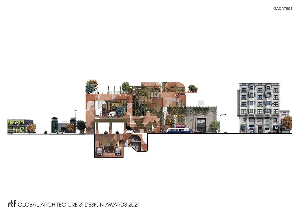 The market hopes to provide a better experience for the neighborhood. This is achieved by memorializing the existing subway, relocating service the underground, and replacing it with an outdoor market/elevated park. The intervention of the market would also serve the community’s need for growing fresh produce. It would also include a travel hub, a community kitchen, and a local exchange program. The local exchange program is tailored for the community and would be a place for them to share and exchange belongings, acting as a method to preserve within the community. Evocation hence aims to encapsulate, share, and create new memories.