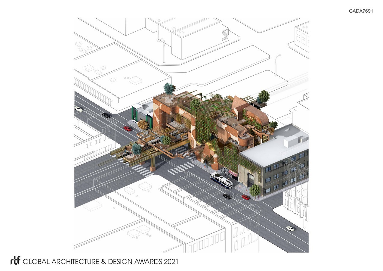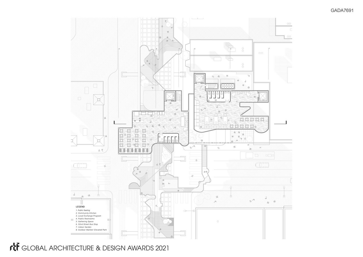 It is a corridor that has witnessed plentiful historical chapters and needs to be preserved to educate the coming generations of the shared emotions and cultures. Evocation aims to create a contemporary and diverse space that can be used by the residents of the area to share and connect. The proposed market/travel hub aims to create a smooth transition between existing traditional conditions and contemporary changes through deconstruction and collaging of different urban elements within the 52nd Street corridor.