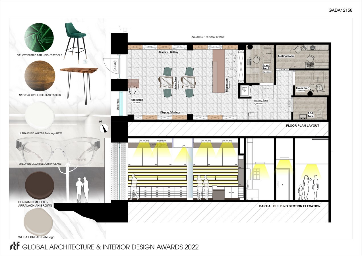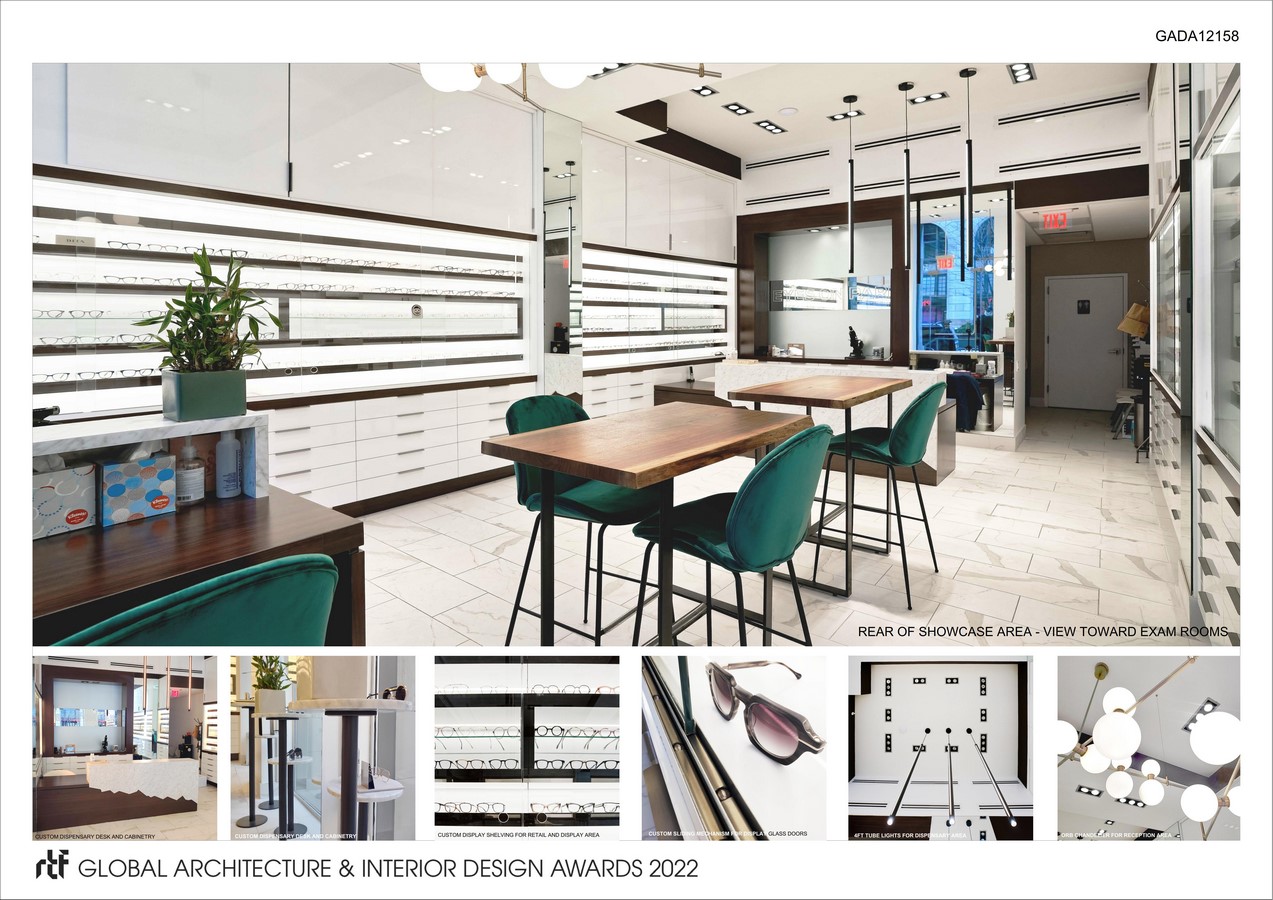 Objectives: The objective behind the project was to portray the idea that eyewear is a threshold through which we see others and how others see us through the method of design – the patrons being the focal point themselves in addition to merchandise when viewed by pedestrians outside. On the inside, the attention then is directed toward the merchandise for the patrons, and comfortable working offices for medical professionals.