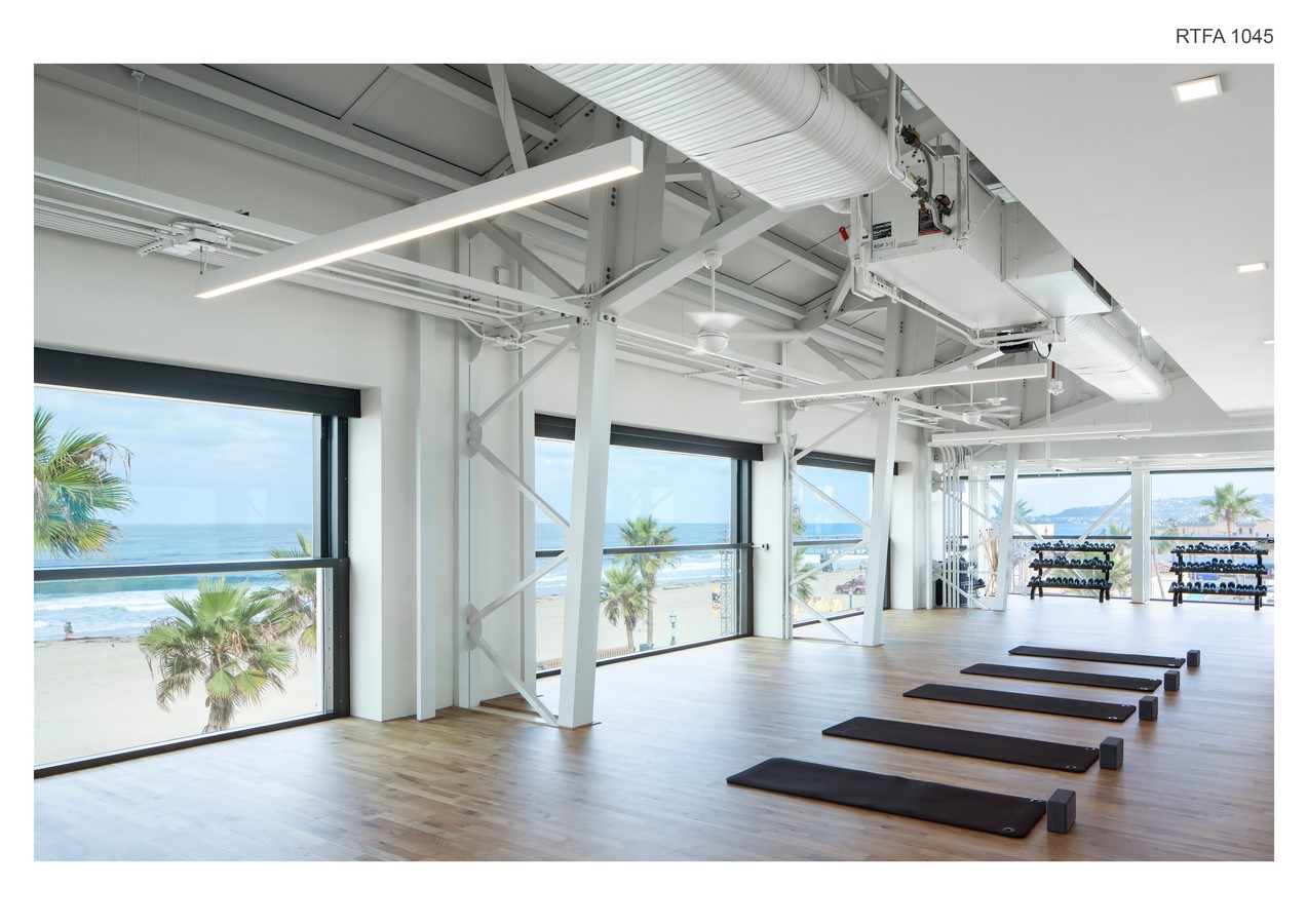 The design includes multi-level decks with panoramic views of the Pacific Ocean and Mission Bay; a 2,500 square foot fully equipped functional fitness roof deck, hall of mirrors group fitness room reflecting the ocean from operable windows, integrated aquatic program, floating playground and a private VIP deck connecting to the oceanfront Beach House food and concert venue.