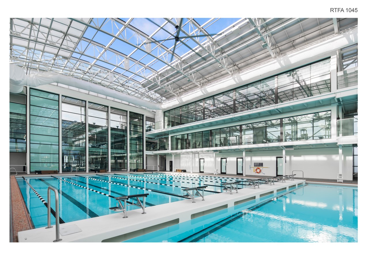 Years later, the pool has been completely restored and the building has taken on a full transformation, rebuild out of aluminum and 40-foot glass walls, the historic pool and connecting Fit Athletic club are now a totally unique and modernized fitness experience.