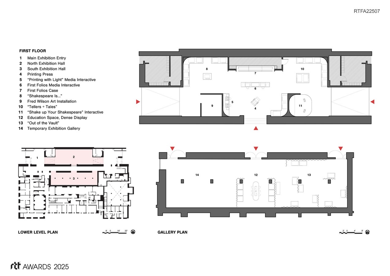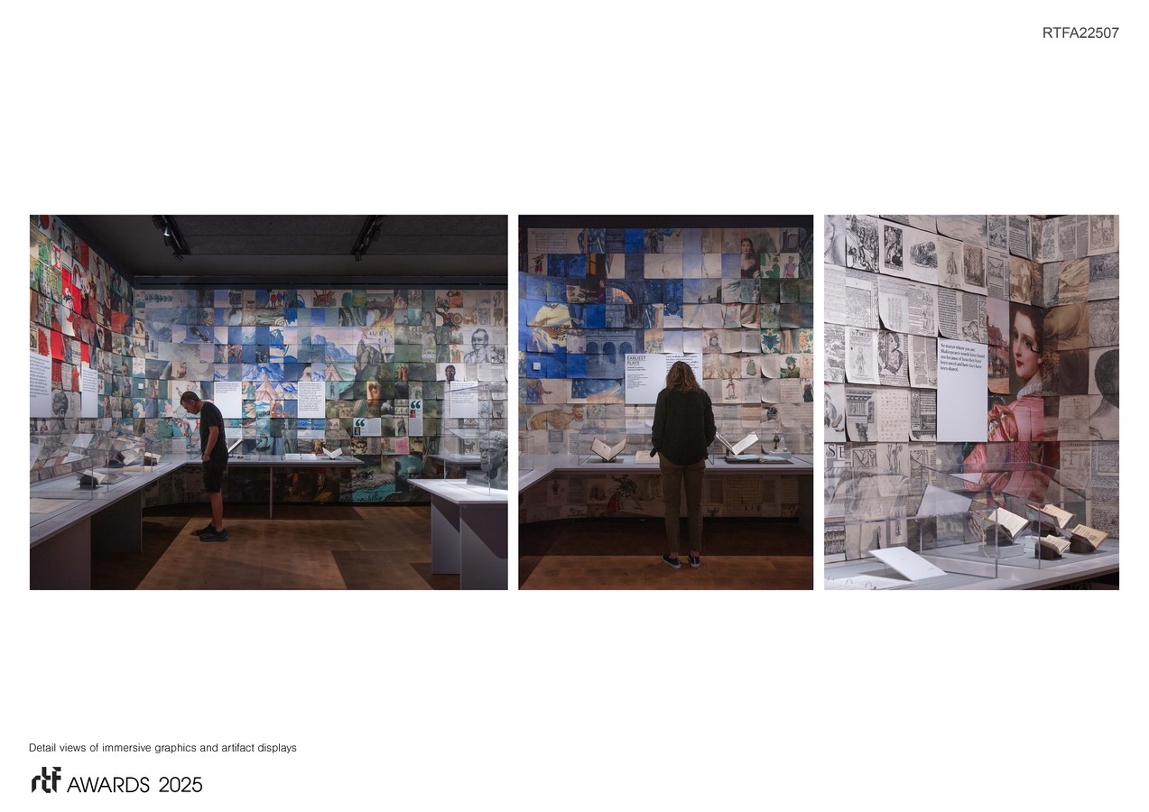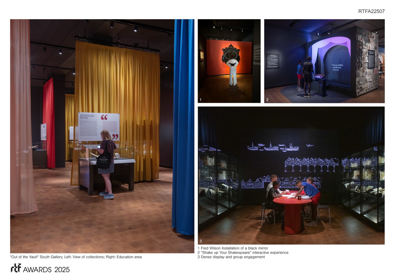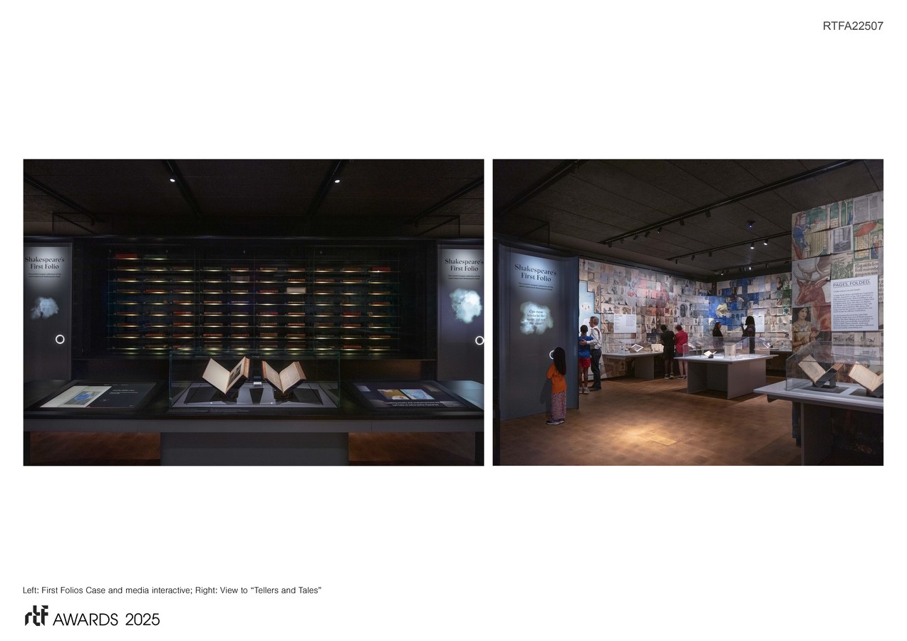 The design premise is to take Shakespeare off his pedestal and bring his works to everyone. There is no “Shakespeare test,” but rather questions, insights, and gentle provocations—adapt the sacred, embrace the profane, reframe Shakespeare worship, and relish in the playful, mundane, and irreverent. The design challenge was creating an exciting visitor experience that would bring Shakespeare to all via works on paper while adhering to the highest conservation requirements.