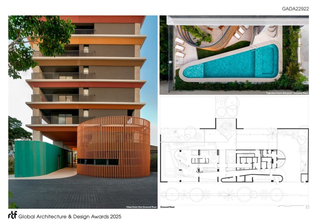 With that in mind, the project seeks to recreate this mountaintop: a space with varied topography on the building’s rooftop and abundant vegetation, as if it were truly part of nature. The mountain concept permeates every aspect of the project: in the materials, colors, and textures, there are references to nature, both in the building’s volume and in its interiors.