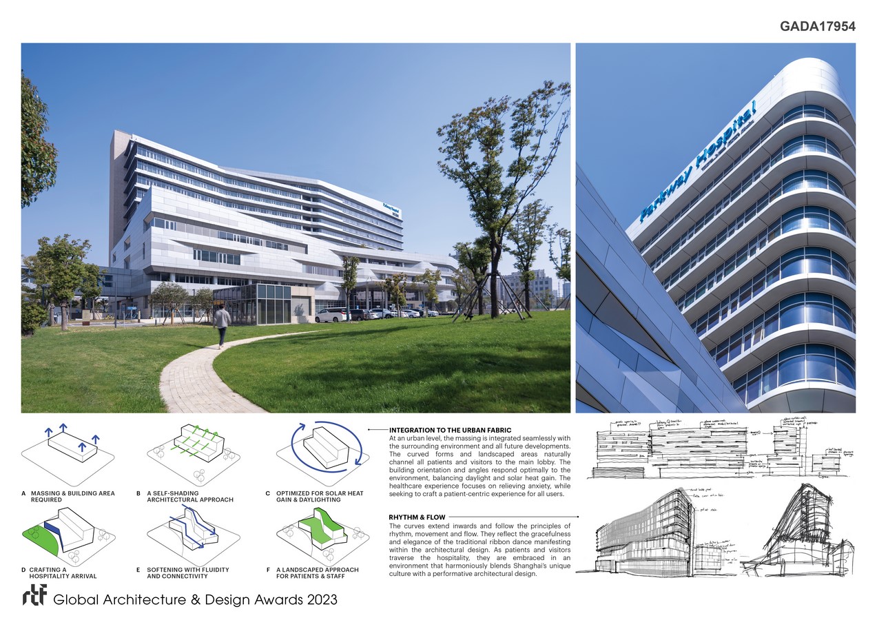 The genesis of this remarkable project lies in a profound exploration of transformative processes, where architecture and healthcare seamlessly intertwine. At its core, a commitment to harmonize with the surrounding environment prevails. The hospital’s design places paramount importance on responding to its climatic conditions and Shanghai’s environmental factors, minimizing direct heat gain while maximizing natural daylight for optimal patient comfort, setting a benchmark in sustainable healthcare architecture.