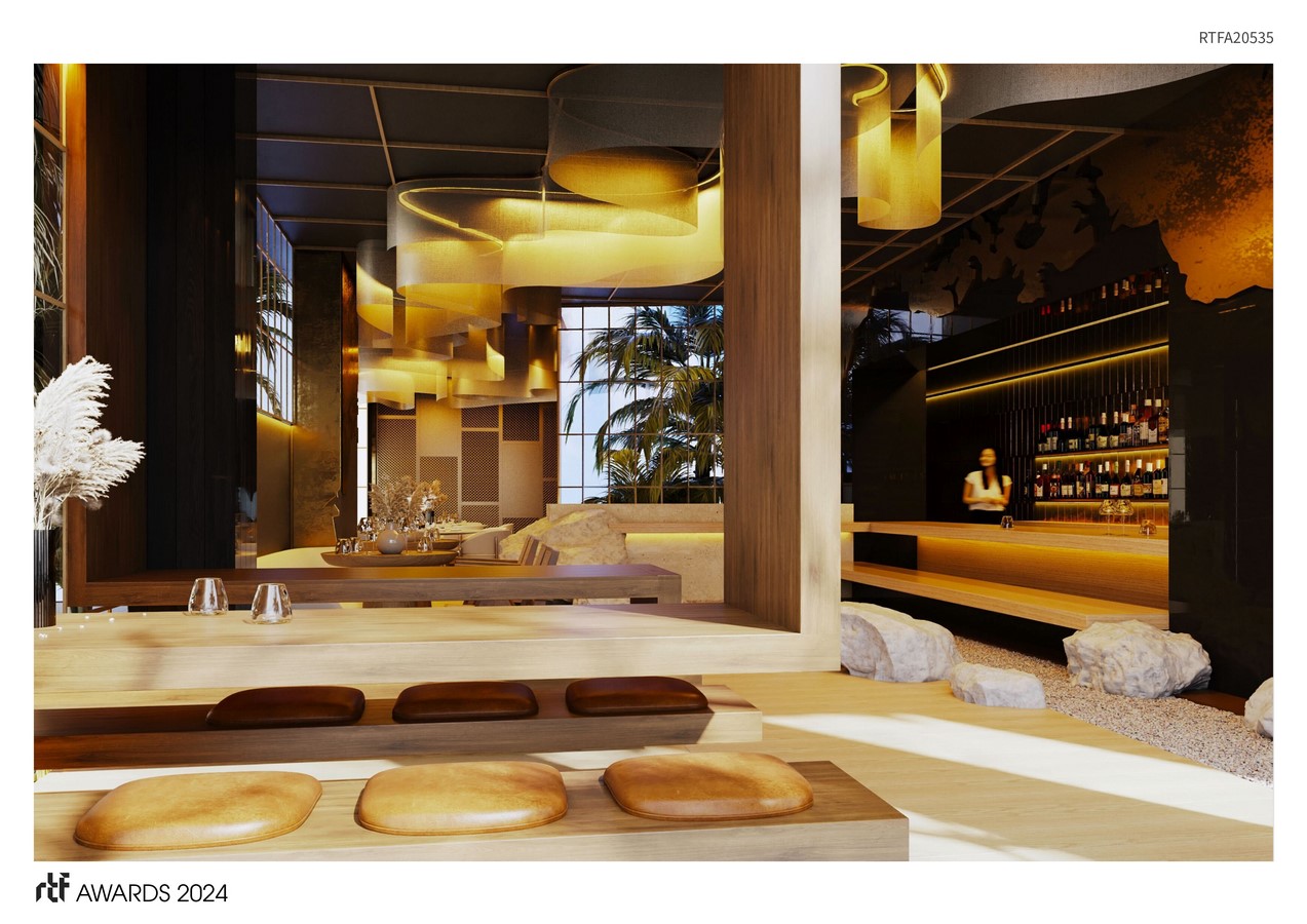 This restaurant design is a dedication to the future of dining – a future that embraces minimalism not as a trend, but as a timeless expression of beauty and function. It is an homage to the raw, the reclaimed, and the reimagined, inviting guests to not just dine, but to partake in a movement that rethinks what it means to feed the soul in harmony with the Earth. In the spirit of the Rethinking the Future Awards, we present a space that is more than an eatery; it is a beacon for change, a cornerstone for the eco-conscious, and a sanctuary where the future of the planet is as important as the present on the plate.