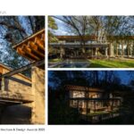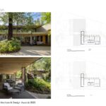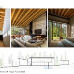 Materiality defines the project: pigmented striated concrete walls pair with locally quarried stone in irregular modules, while engineered wood flooring and custom carpentry by Chain + Siman bring craft and precision. Black aluminum frames with Duovent glazing ensure thermal comfort. Sustainable strategies—solar hydronic heating, cross ventilation, rainwater harvesting, and high-performance enclosures—reduce energy demand without compromising design.