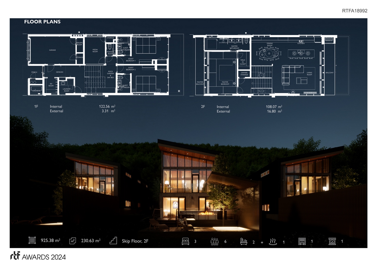 Comprising three generous villas, one mirrored, each spanning 250 m² and two floors, ‘Grand Tsuru’ offers a spacious living/dining/kitchen area with a vaulted ceiling. The three bedrooms, all ensuite, showcase Japanese-style design, with the master bedroom featuring a private tiled bathroom. The staircase, bathed in natural light from loft windows, serves as the masterpiece connecting all four corners of the skip floor property. In essence, ‘Grand Tsuru’ is a harmonious blend of architectural grace, cultural influence, and natural splendor, defining itself as more than a residence—it’s a work of art.