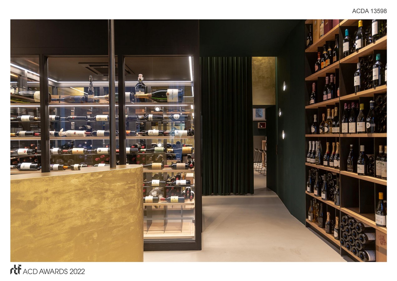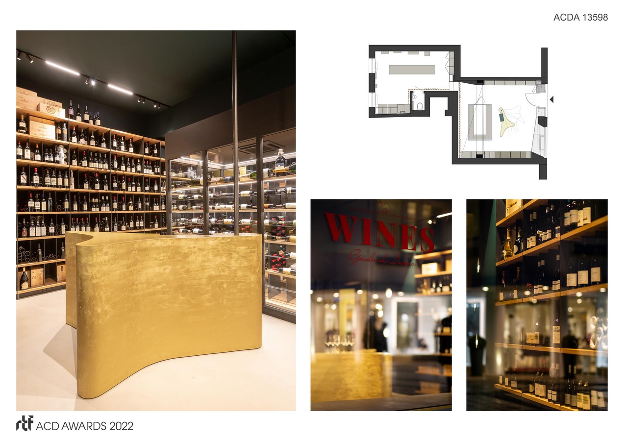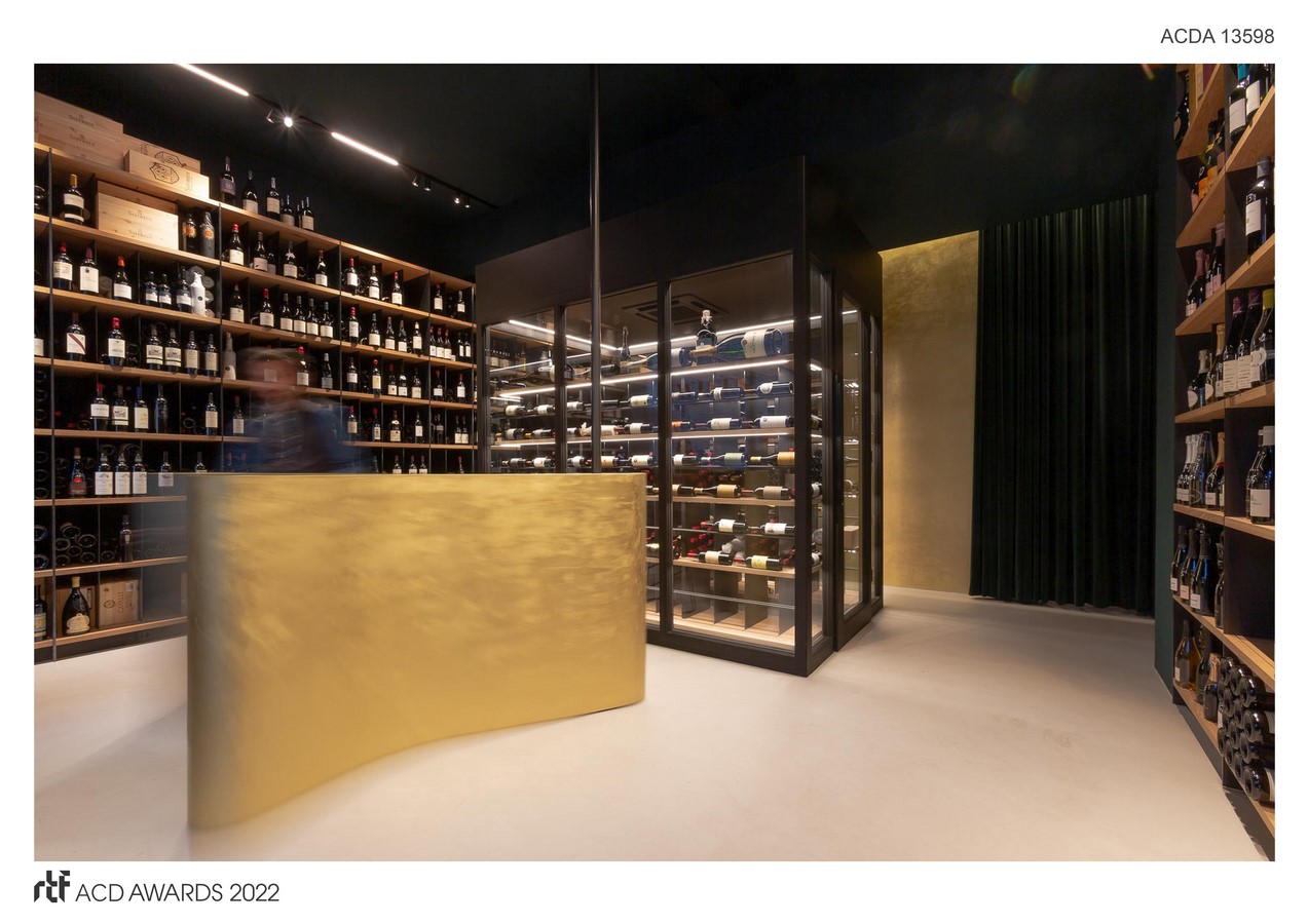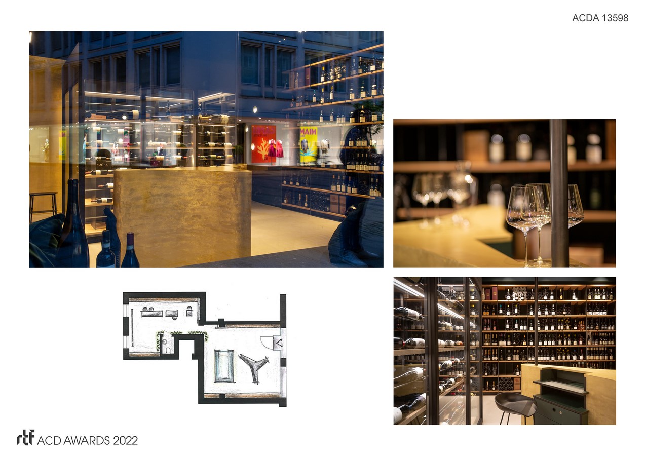 The award-winning sommelier Julian wants to offer in this space premium wines. Centerpiece of the concept is a custom-made walk in chambrair Illuminated like a sculpture on a golden painted back wall like a canvas.