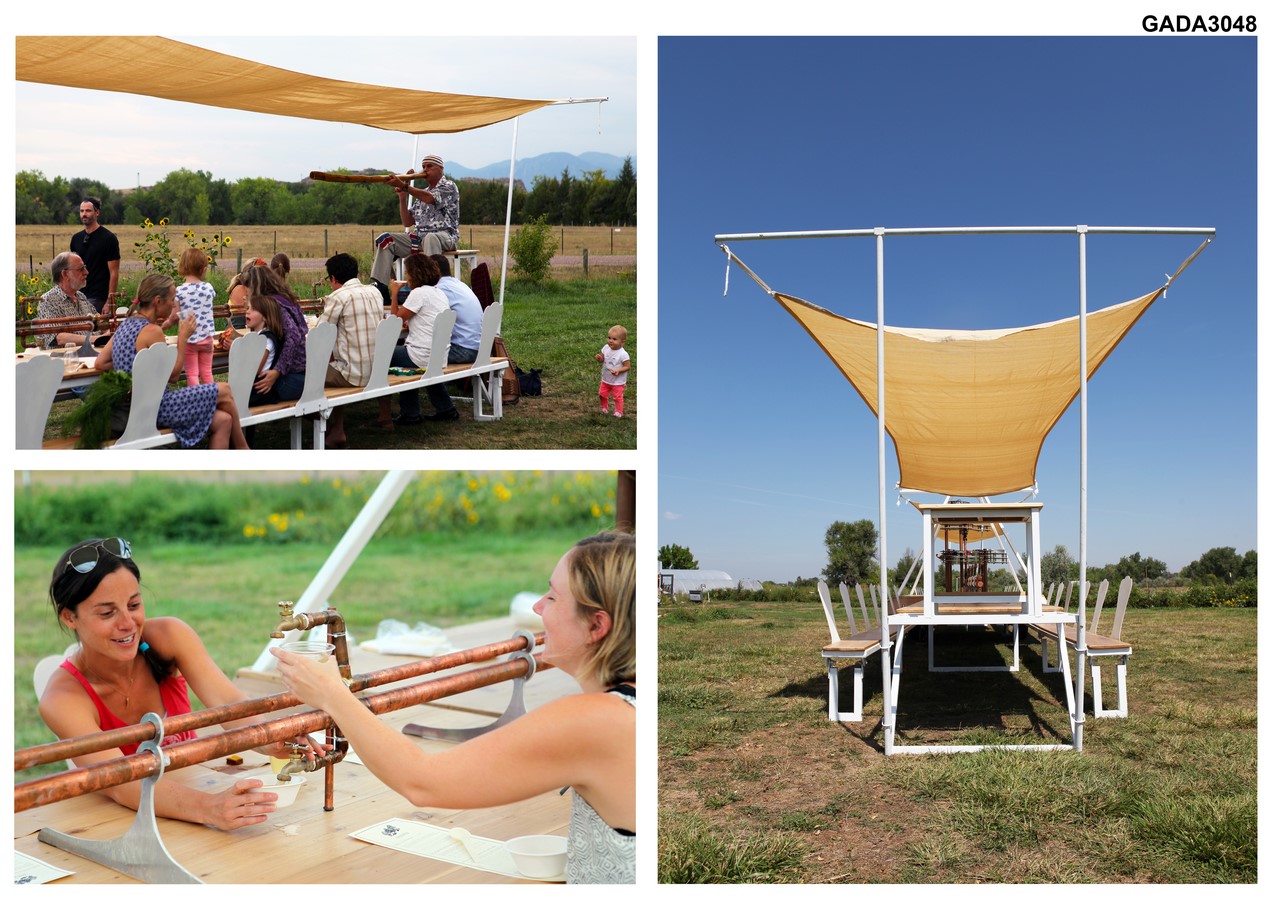 Now is the perfect time to experience a unique phenomenon of our times by sitting down to a meal in the natural settings from where these ingredients will soon be no more. With each event HARM TO TABLE travels and unfolds to serve hundreds of people by providing seating, a unique self-serve gravity-fed food system, and two elevated seats for musicians to contribute to this dining atmosphere.