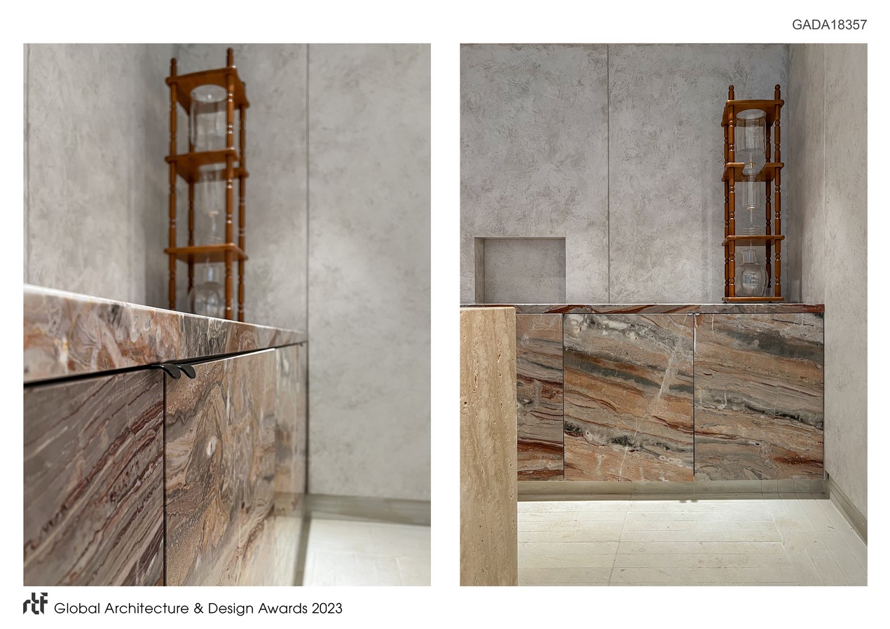 In addition to the aesthetic allure, practicality took center stage in our design process. We meticulously addressed the operational dynamics of the space, ensuring an optimal workflow and storage solutions that seamlessly blend with the clean, minimalistic aesthetic. Leather-wrapped wall panelling adds a tactile richness, embodying the commitment to detail. Recessed water dispensers and thoughtfully positioned merchandise displays enhance both form and function, contributing to the overall fluidity of the space.