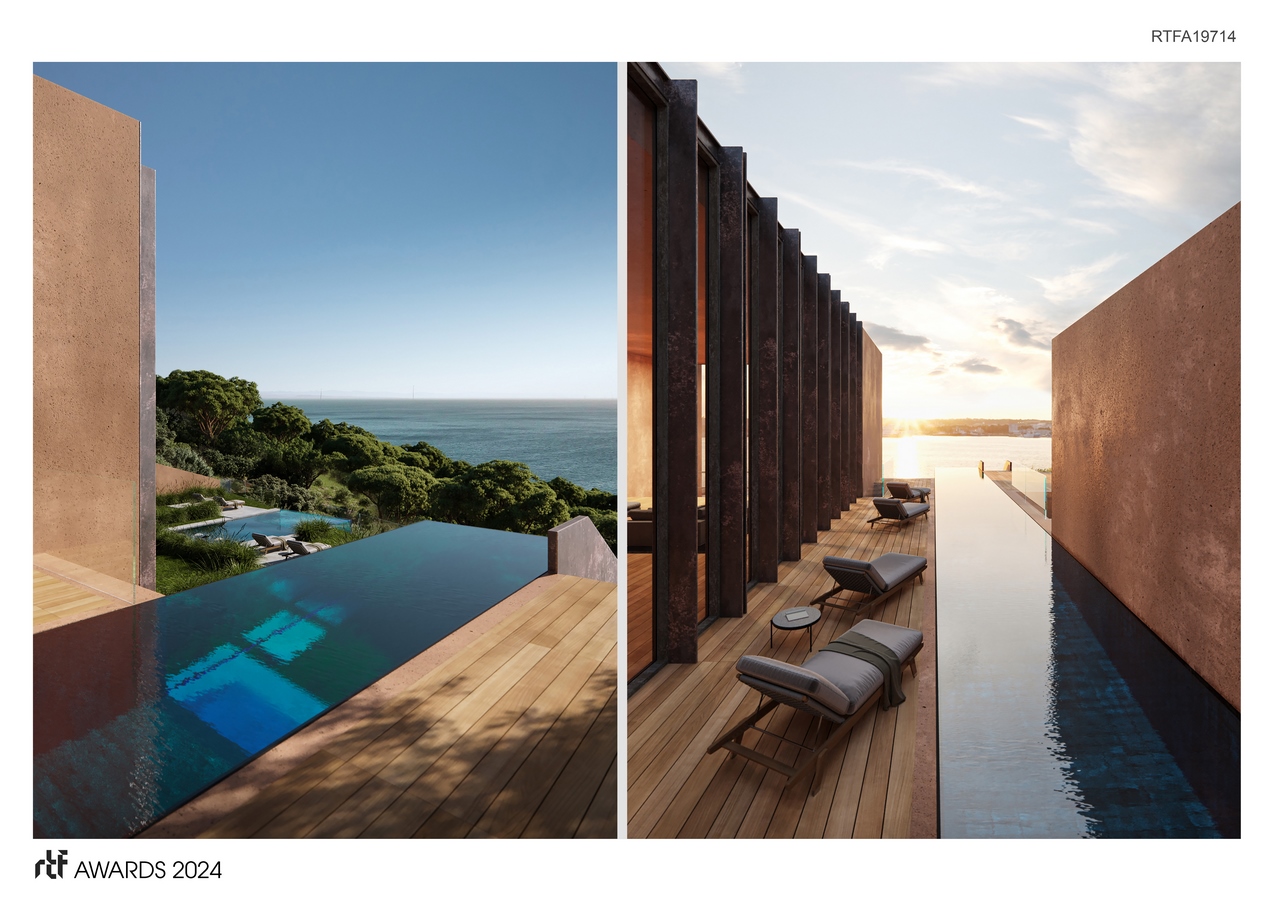 The project has 2 pools: a splendid consoled swimming path with a glass structure facing the ocean; and a large swimming pool facing the cliff.