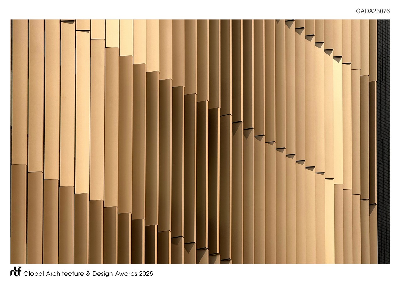 At the same time, the signage incorporates motifs from the building’s facade, where golden louver fins evoke rippling wheat fields shaped by wind simulations. By uniting interior and exterior, the signage achieves harmony with the architecture while carrying forward the symbolic resonance of wheat—the ingredient that once revolutionized soy sauce brewing. Additional gestures reference the expanse of wheat fields, conveying warmth and openness while balancing sharp geometries that reflect modernity.