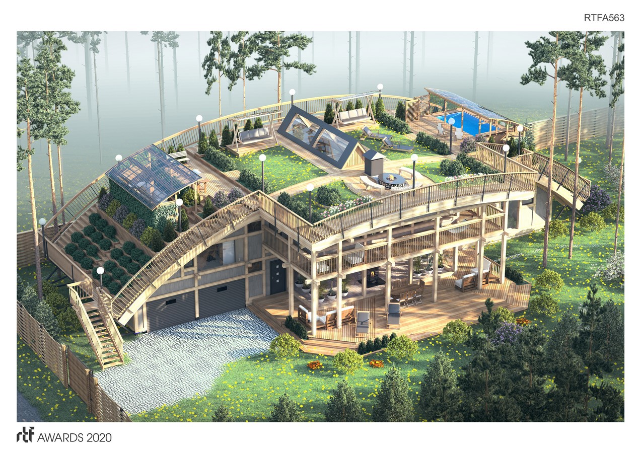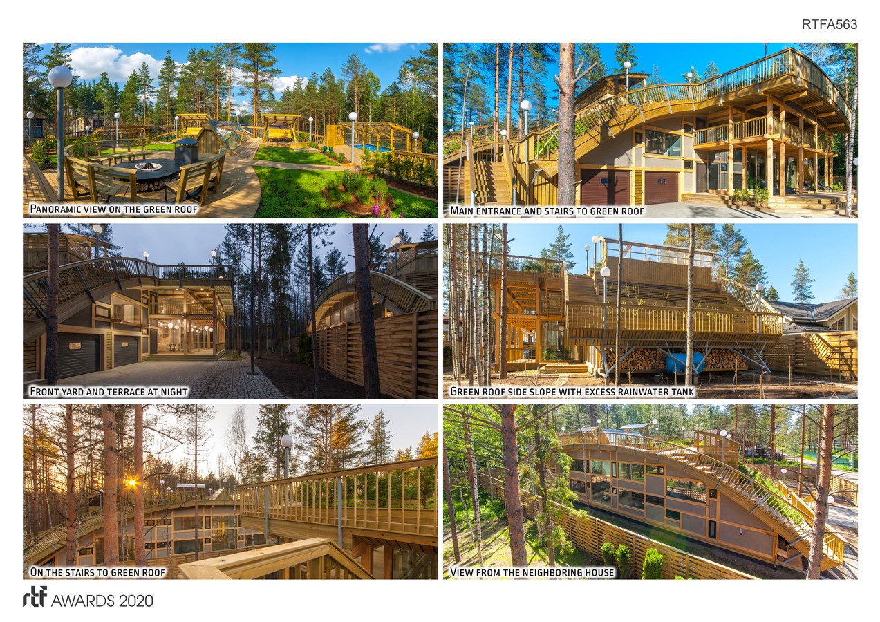 This exclusive project features a luxurious 360 m2 private house with a full-sized exploitable rooftop garden. In the past few years, the company has designed and constructed 14 similar buildings in St. Petersburg region, Russia.
