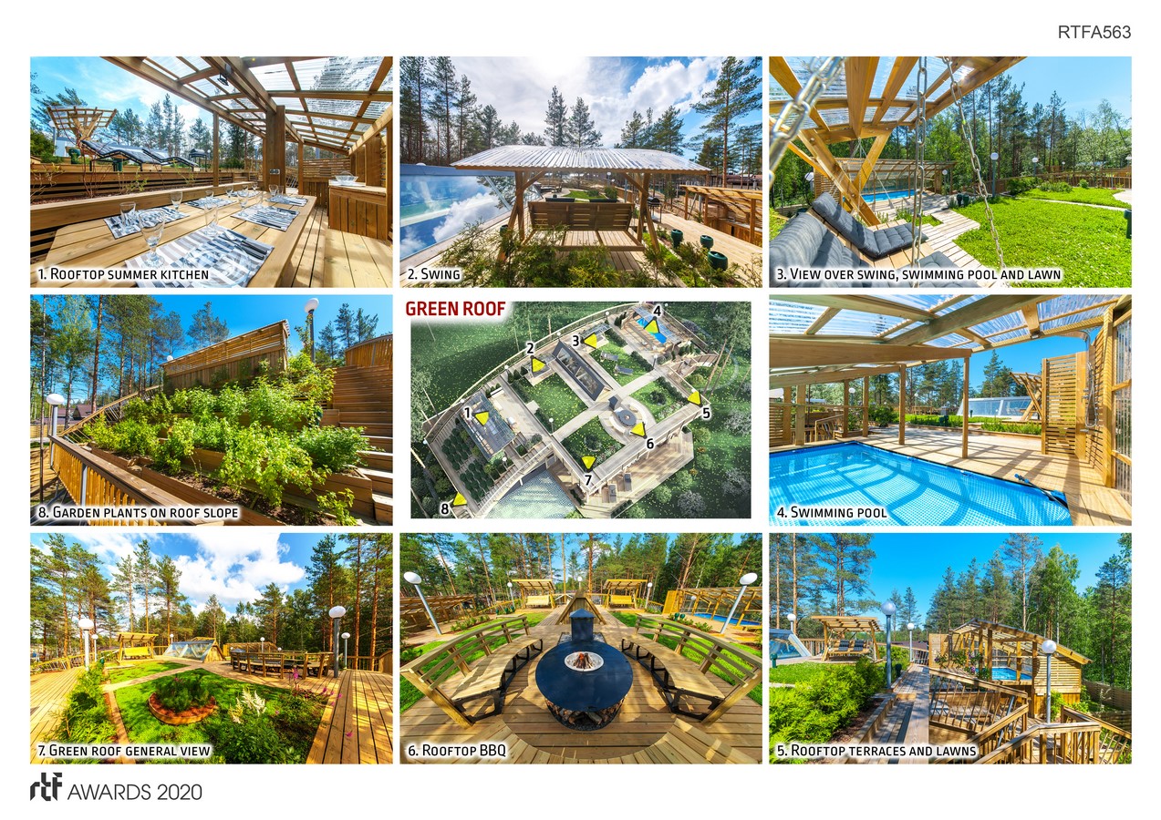 The objective of the project was to enhance the traditional Scandinavian green roof (a pitched roof with fairly primitive vegetation), turning it into a real park – a place to relax in nature and enjoy outdoor recreation.