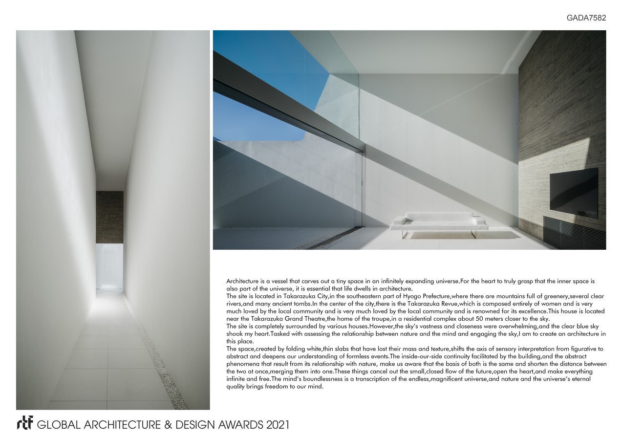 The site is located in Takarazuka City, in the south eastern part of Hyogo Prefecture, where there are mountains full of greenery, several clear rivers, and many ancient tombs. In the center of the city, there is the Takarazuka Revue, which is composed entirely of women and is very much loved by the local community and is very much loved by the local community and is renowned for its excellence. This house is located near the Takarazuka Grand Theatre, the home of the troupe, in a residential complex about 50 meters closer to the sky.