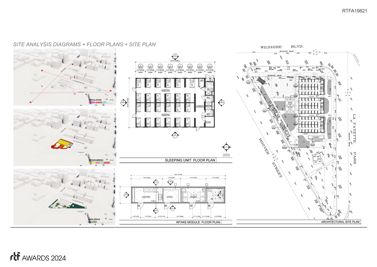 “Suitable & safe shelter is a basic need, and lack thereof can have a damaging effect upon the health and well-being of individuals and communities alike,” – a quote from former Los Angeles Mayor Eric Garcetti’s Executive Directive declaring a shelter crisis, urging the city to take immediate action. Garcetti introduced “A Bridge Home Initiative” – a step towards creating a refuge to end the moral/humanitarian crisis that plagues LA — a plan to avoid relocating the homeless to an unfamiliar place. In tandem, the County of LA granted the City of LA temporary use (3 years) of a Koreatown/Wilshire Blvd. park as a Temporary/Bridge Housing location. Selected through the LA RFP process, our design solution prescribed modified cargo contaiiner modules that could be rapidly fabricated, delivered/installed and then relocated to a new site within the required three years.