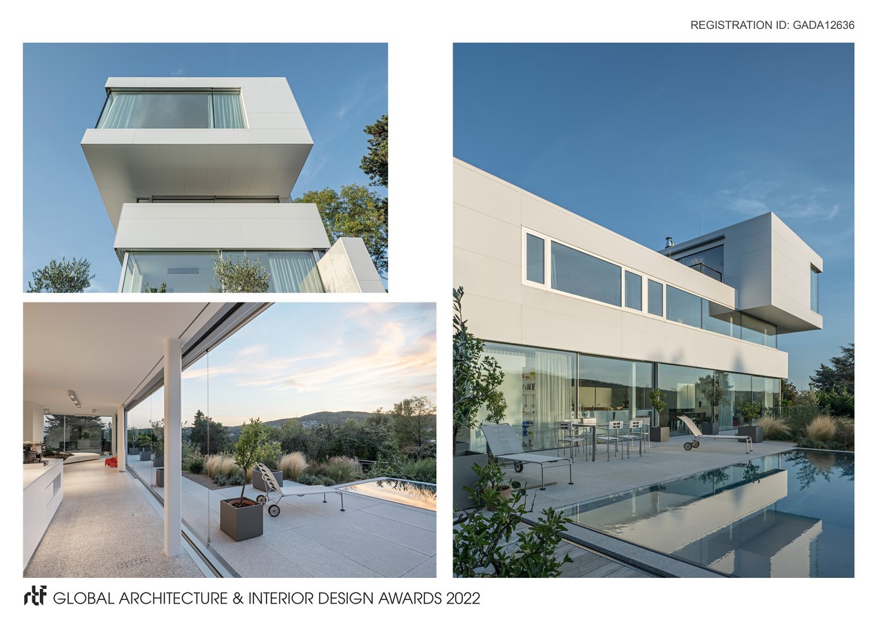 On the other hand, House Rock blends into the hillside, its street-side closure contrasting with the extroversion of the tower-like lookout and the almost complete opening towards the west-facing terrace and pool.