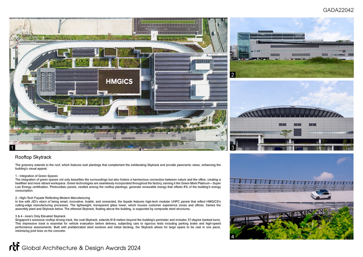 Hyundai Motor Group Innovation Center Singapore is a landmark in sustainable urban design, blending cutting-edge technology with a profound commitment to environmental stewardship. Its green features, including extensive greenery, an innovative rooftop track, and energy-efficient technologies, not only set new standards for industrial buildings but also align with Singapore’s goals for reducing carbon emissions and enhancing green spaces. By prioritizing sustainability and user well-being, HMGICS serves as a model for future developments in both green architecture and smart urban planning.