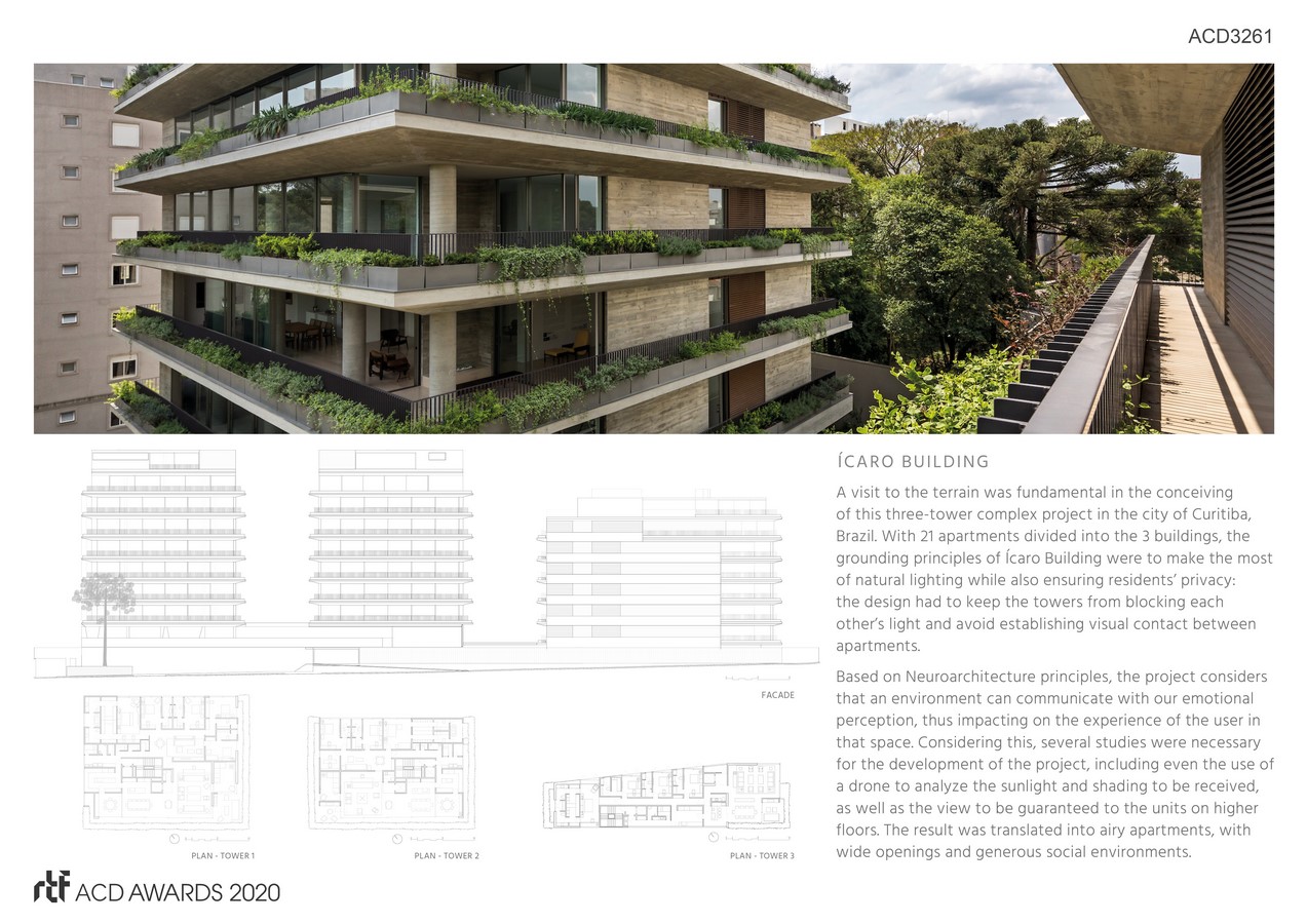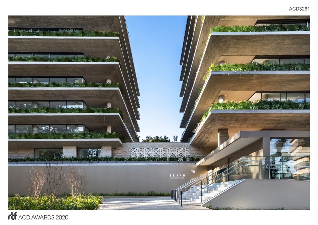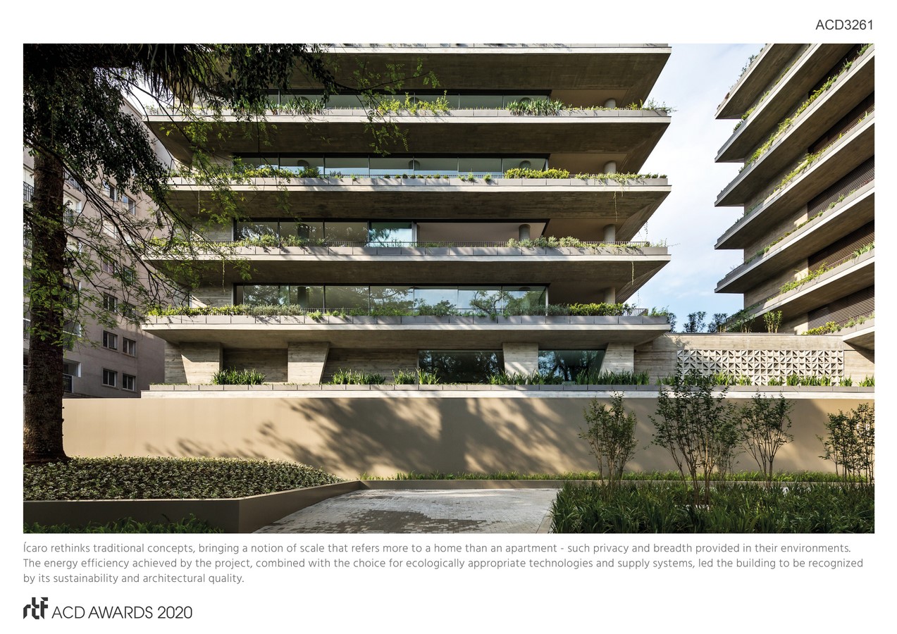 Ícaro rethinks traditional concepts, bringing a notion of scale that refers more to a home than an apartment – such privacy and breadth provided in their environments. The energy efficiency achieved by the project, combined with the choice for ecologically appropriate technologies and supply systems, led the building to be recognized by its sustainability and architectural quality.
