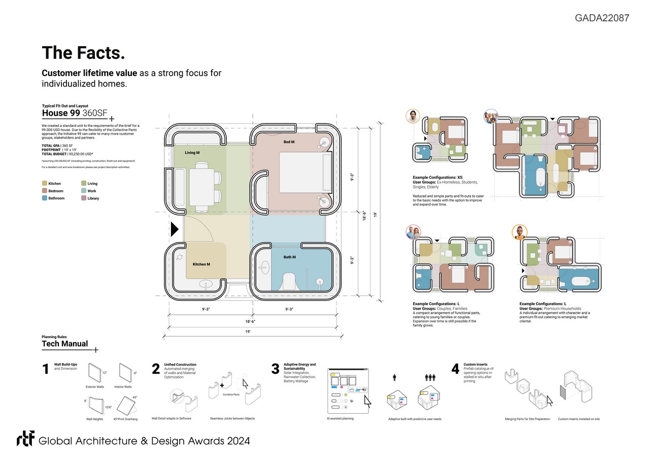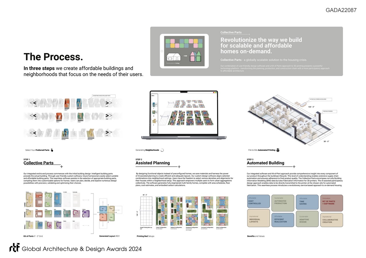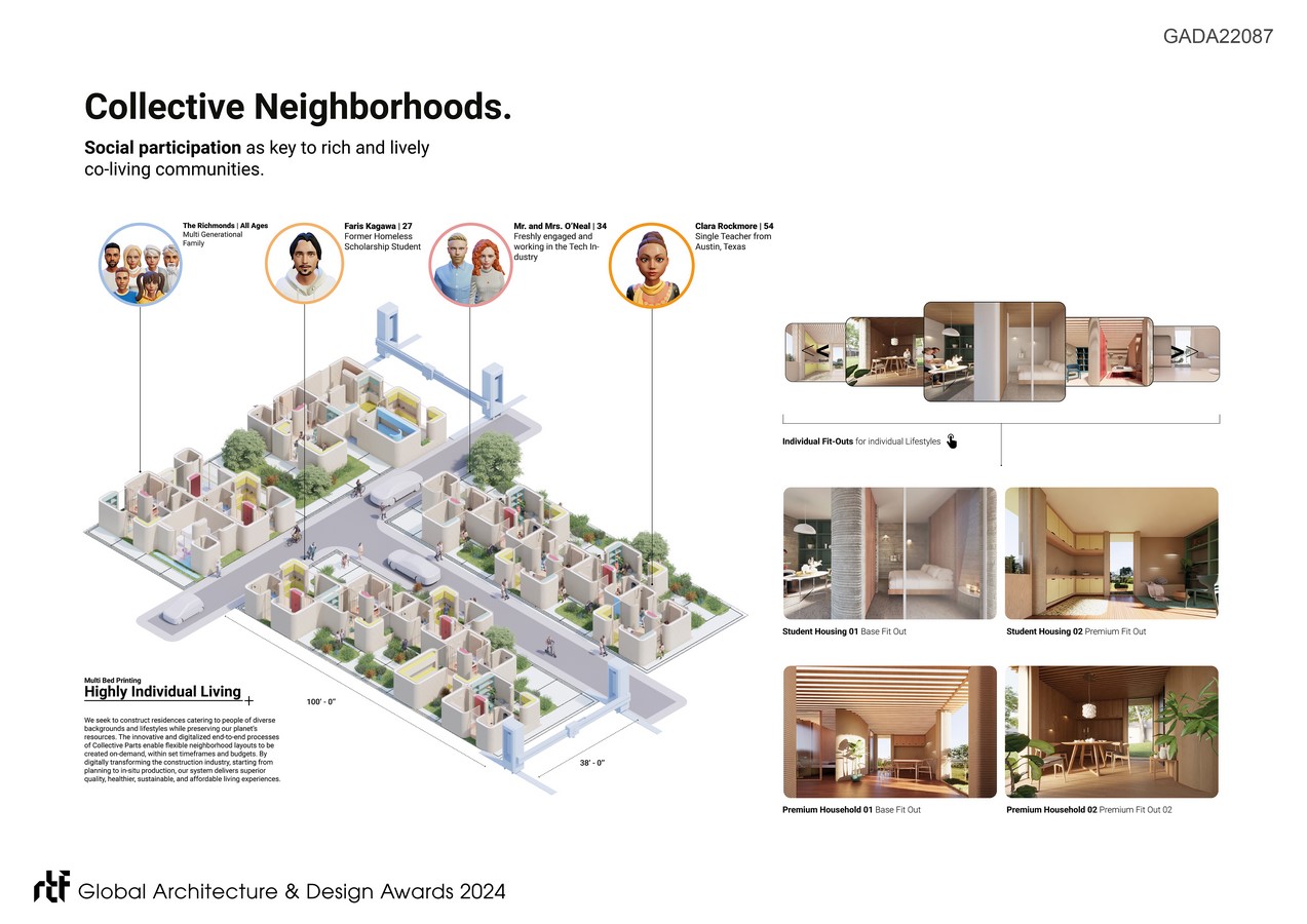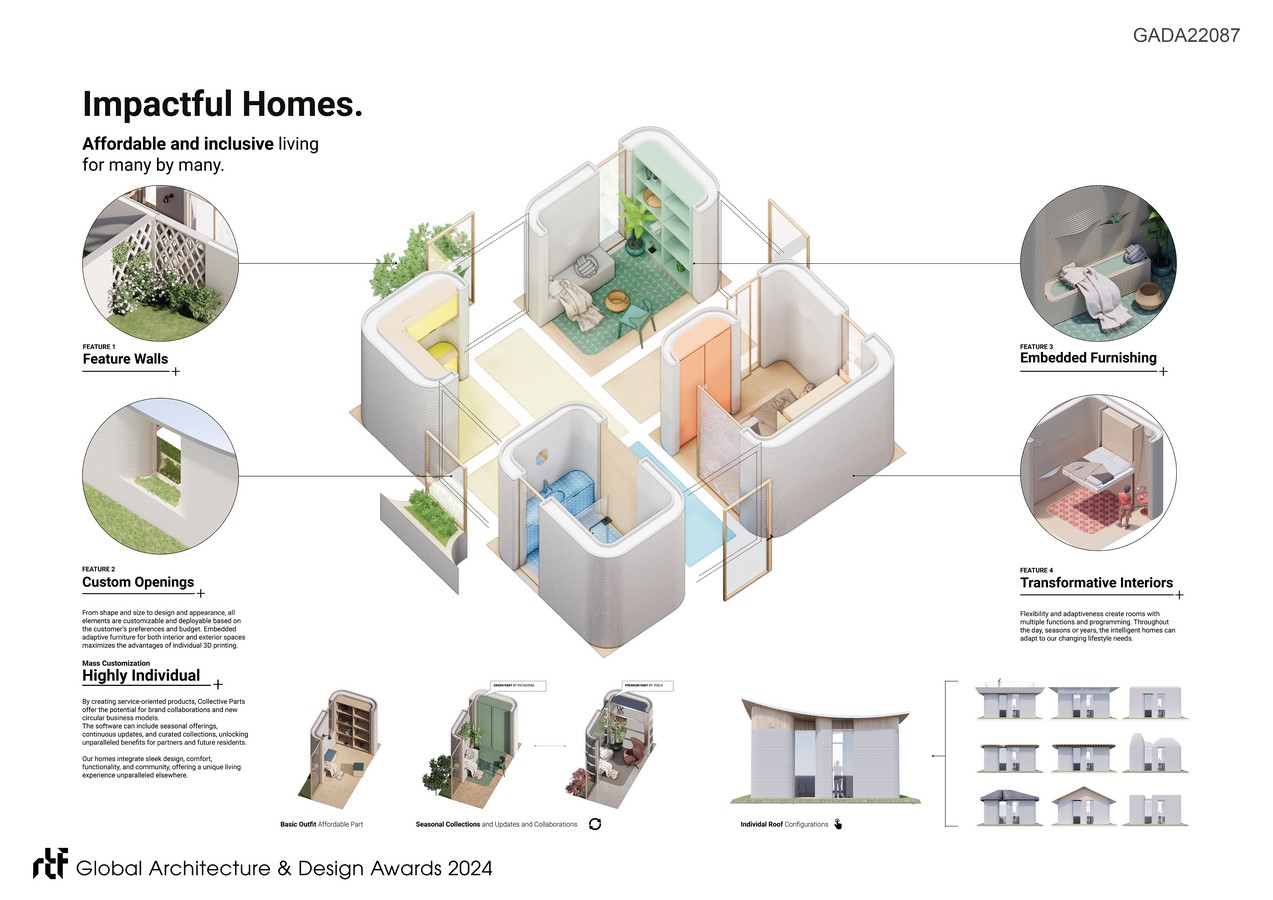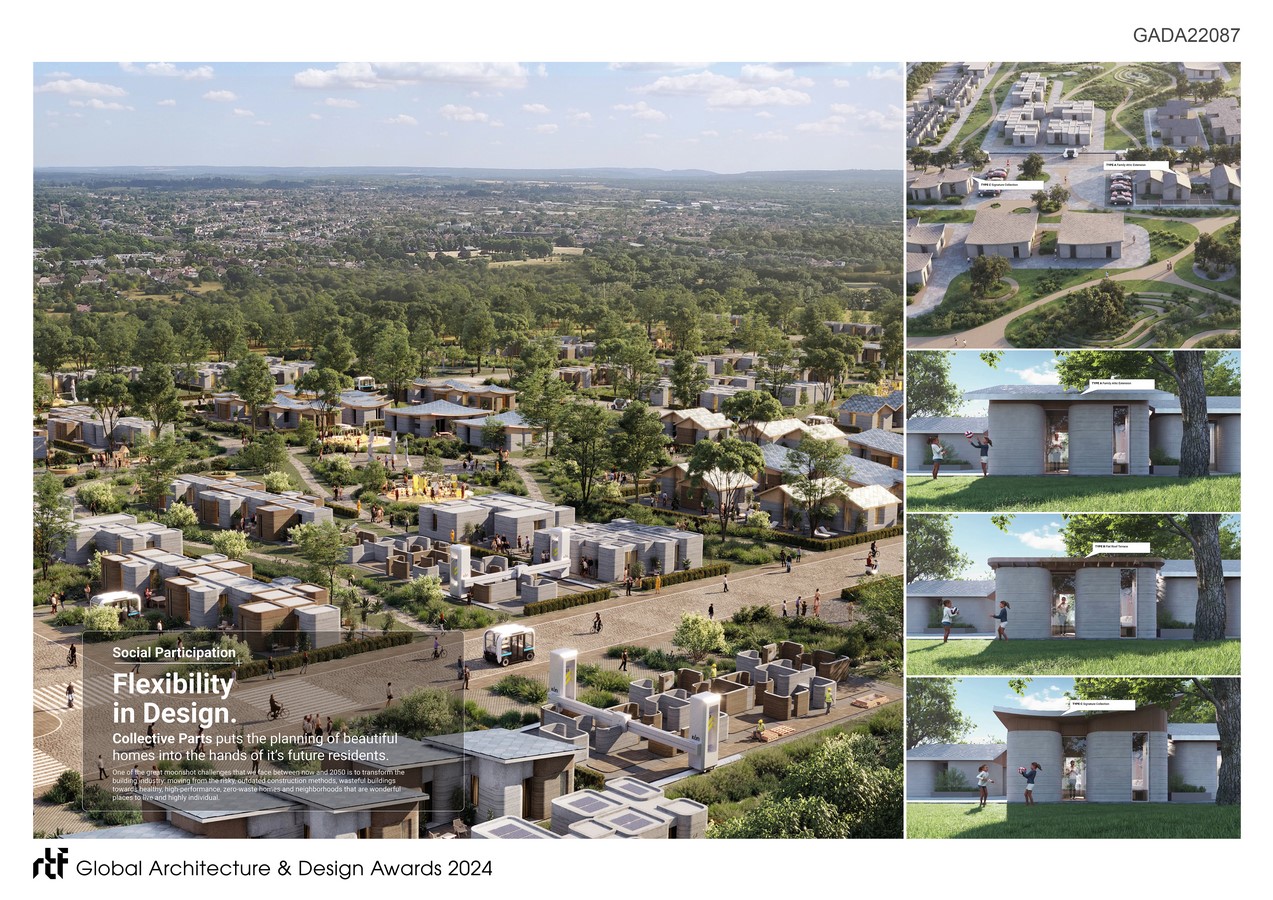 To tackle the global housing crisis, “Collective Parts” offers a revolutionary approach to scalable and affordable housing. With rising living costs posing a significant threat to financial security for nearly half of Americans, the building industry must evolve to deliver high-quality homes more quickly and cost-effectively, tailored to the needs of future residents.