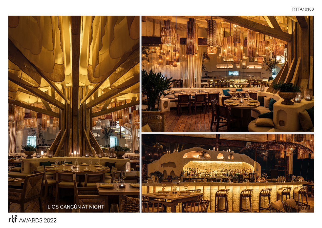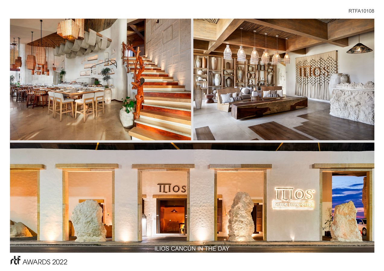 Ilios celebrates not only multicultural fusion, it also makes reference to nature, integrating itself into the space in which it meets raw materials such as treated wood, natural stones, concrete, raw colors, linen fabrics, and reed.