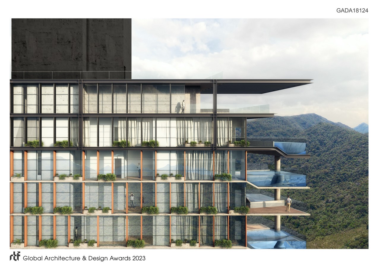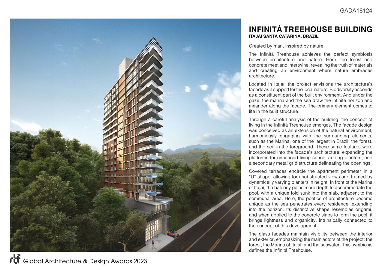 Through a careful analysis of the building, the concept of living in the Infinitá Treehouse emerges. The facade design was conceived as an extension of the natural environment, harmoniously engaging with the surrounding elements, such as the Marina, one of the largest in Brazil, the forest, and the sea in the foreground. These same features were incorporated: expanding the platforms for enhanced living space, adding planters, and a secondary metal grid structure delineating the openings.