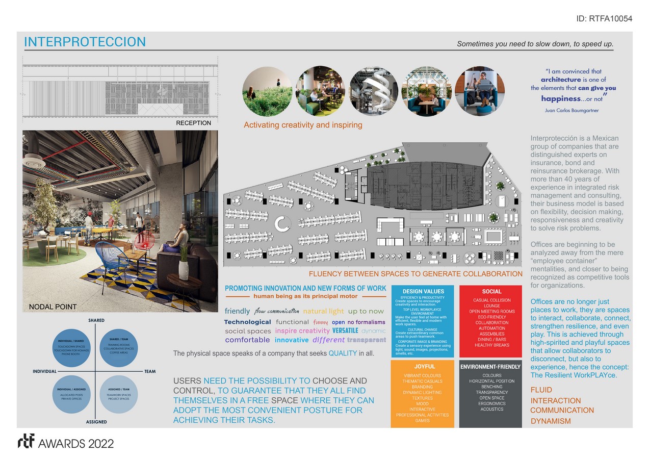Offices are no longer just places to work, they are spaces to interact, collaborate, connect, strengthen resilience, and even play. This is achieved through high-spirited and playful spaces that allow collaborators to disconnect, but also to experience, hence the concept: The Resilient WorkPLAYce.