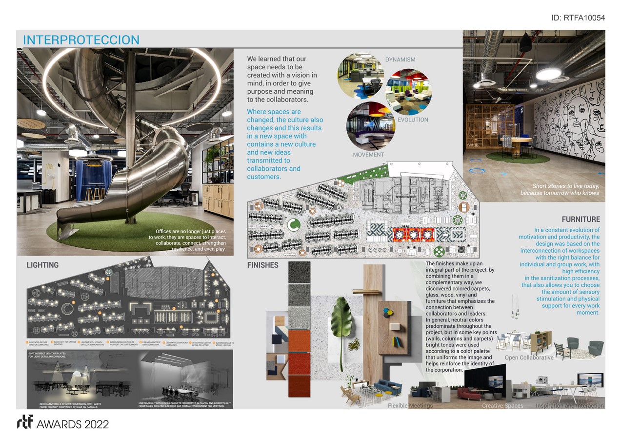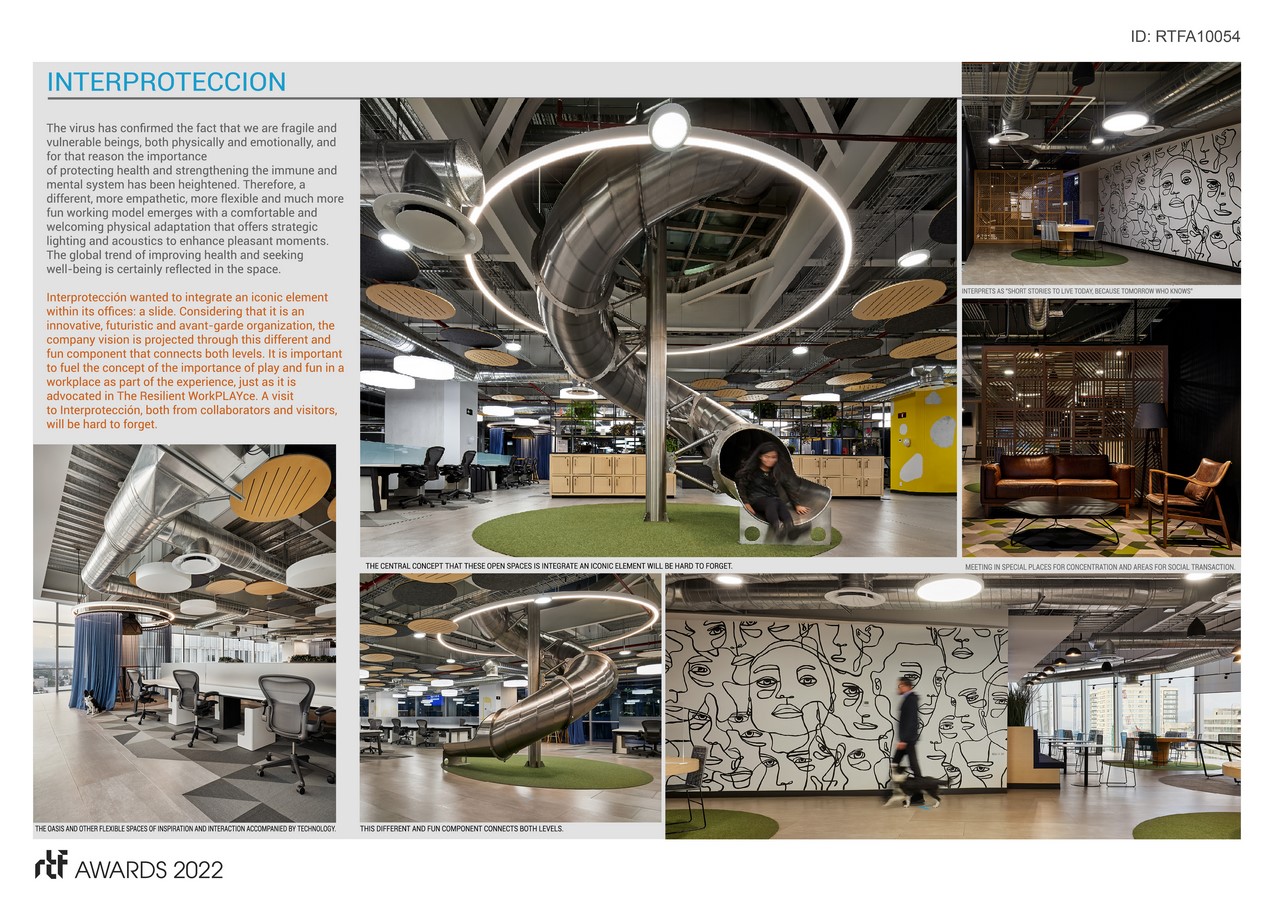 Interproteccion wanted to integrate an iconic element within its offices: a slide. Considering that it is an innovative, futuristic and avant-garde organization, the company vision is projected through this different and fun component that connects both levels. It is important to fuel the concept of the importance of play and fun in a workplace as part of the experience, just as it is advocated in The Resilient WorkPLAYce. A visit to Interproteccion, both from collaborators and visitors, will be hard to forget.