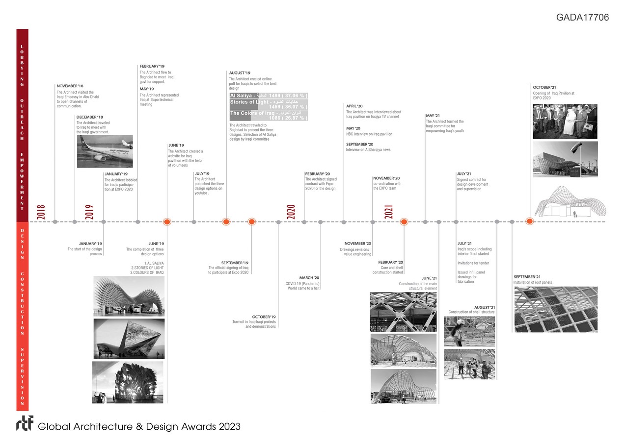 Located in the Opportunity District, the Iraq Pavilion was realized with an architect’s determination for Iraq to have a pavilion at EXPO 2020. Despite numerous challenges, the Iraq Pavilion became a reality. The designer’s passion and unwavering belief in architecture’s power to create positive change led to its success. This achievement came despite the lengthy process of lobbying, outreach, securing financial support, design, and construction supervision, all while managing various stakeholders.