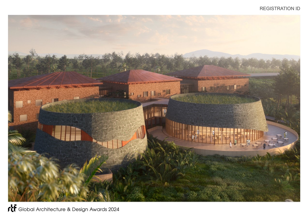 The different areas are joined together, creating a platform for interacting and sharing knowledge. The shapes of the building draw their inspiration from the natural environment of Rwanda: volcanoes, hills, earth and water.