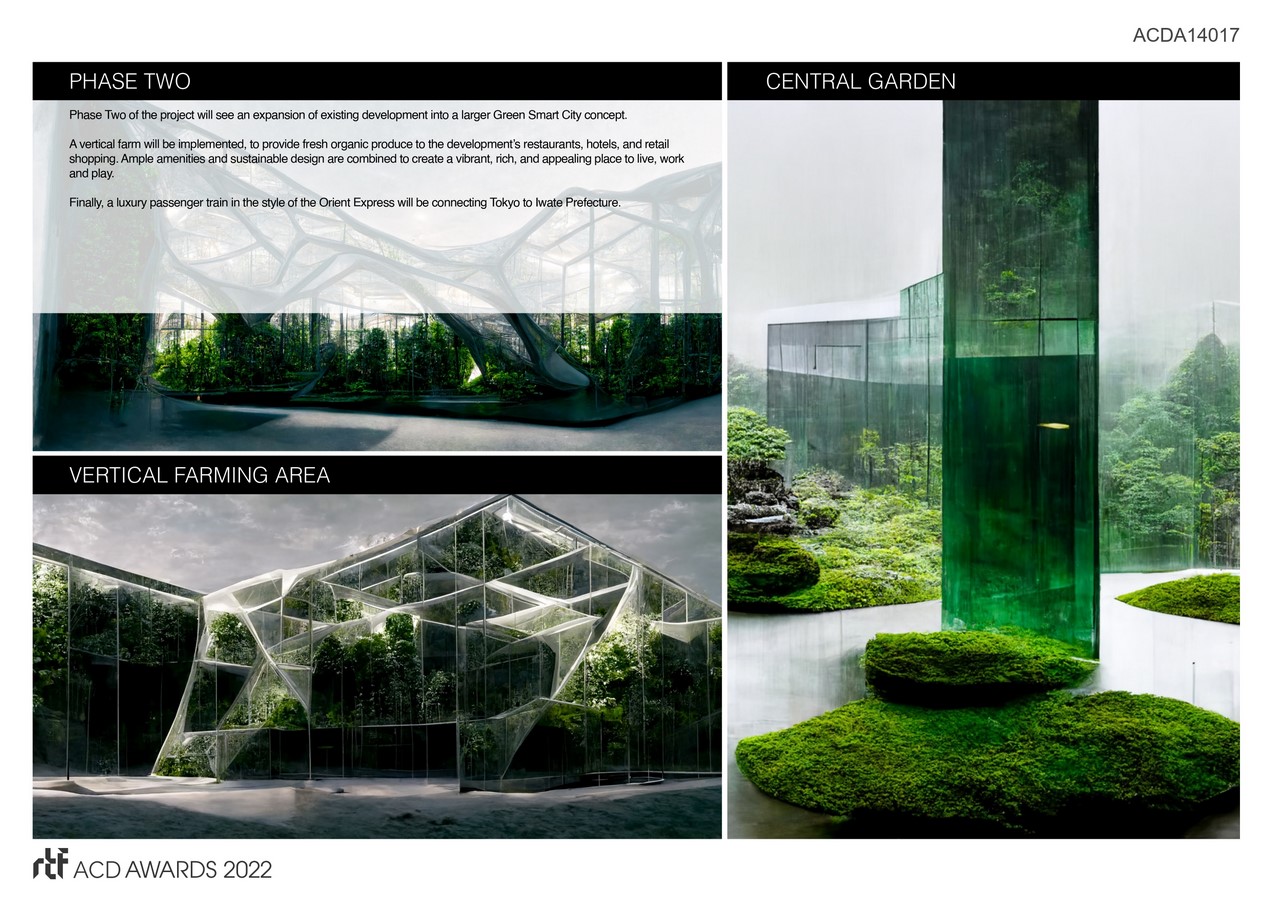 Phase Two of the project will see an expansion of existing development into a larger Green Smart City concept. A vertical farm will be implemented, to provide fresh organic produce to the development’s restaurants, hotels, and retail shopping. Ample amenities and sustainable design are combined to create a vibrant, rich, and appealing place to live, work and play. Finally, a luxury passenger train in the style of the Orient Express will be connecting Tokyo to Iwate Prefecture.