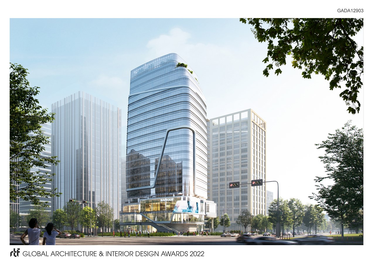 The 21,000 sqm tower consists of 8-storey HQ office, 9-storey bank head office and 3-storey retail podium. The tower’s convex and podium’s concave orientation is an intentional result of optimizing views with embracing gestures along the road intersection. The artistry of the building is fully represented through the crystallization effect on the façade design. The glass curtain wall plays a major role to the building’s purity with carefully selected high-performance material. Glass curtain wall uses energy saving, low-emissive, low-iron glass.