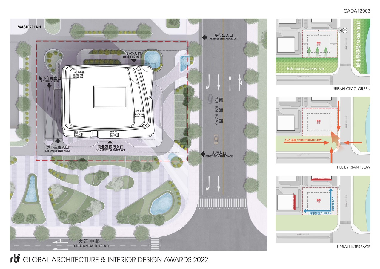 The project proposes a new integrated and flexible office building that offers the concept of Activity Based Working and people-centric workspace. Rethinking the type of office building and its function, the core mission is to create a positive social impact and to activate the work and play environment. The design ambition is to create a simple but unique form that acts as a beacon in the new CBD.