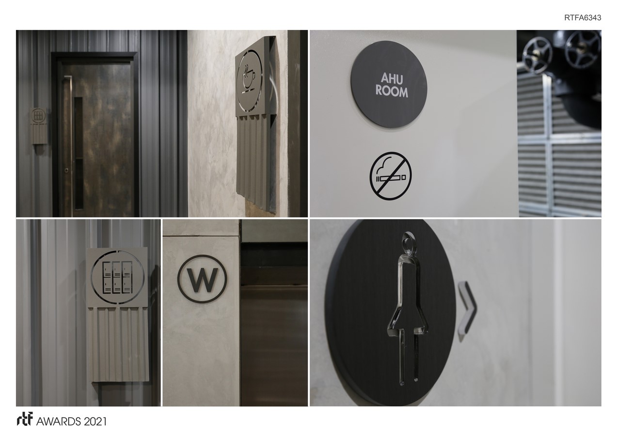 Being a large-scale office building that accommodates 8,000-10,000 staffs with 24/7 working hours, the consideration in users’ health and prevention of office syndrome are key strategies of the design. The intention is translated into the height difference of the signage, bringing interesting dynamic to the workspace while at the same time enhances users to exercise their visuals and neck muscles. Additionally, the use of eco-friendly materials and volatile substances is also intention to prevent users from any possible toxic environment.