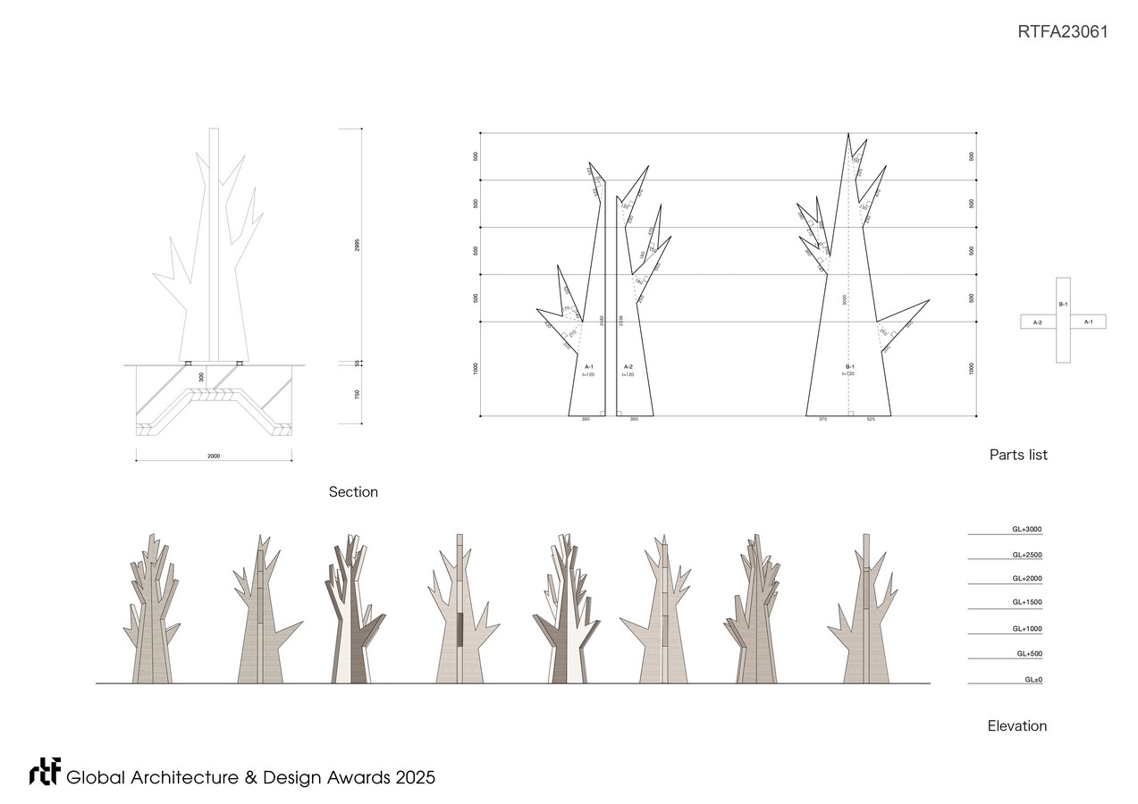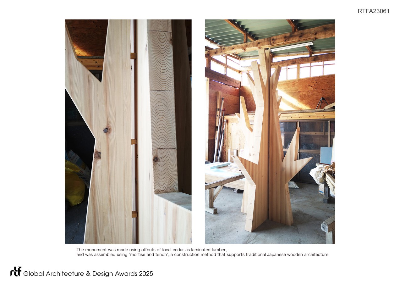 It was made using offcuts of local cedar as laminated lumber, and was assembled using “mortise and tenon”, a construction method that supports traditional Japanese wooden architecture.