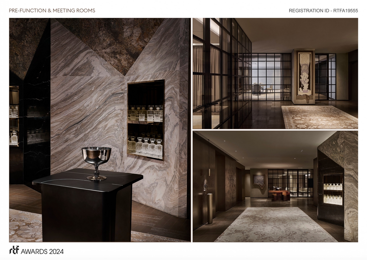 The Discovery Bar offers an exclusive arrival experience, allowing guests to select personalized amenity scents and teas, intertwining their stay with the essence of the surroundings. The experince unfolds as a tapestry of discoveries, with concealed cabinets, secluded gardens, and contemplative nooks for guests to revel in. The design narrative draws inspiration from Shanghai’s European heritage, blending it with a futuristic reinterpretation of Shikumen architecture, honoring the city’s past while nodding towards its future.