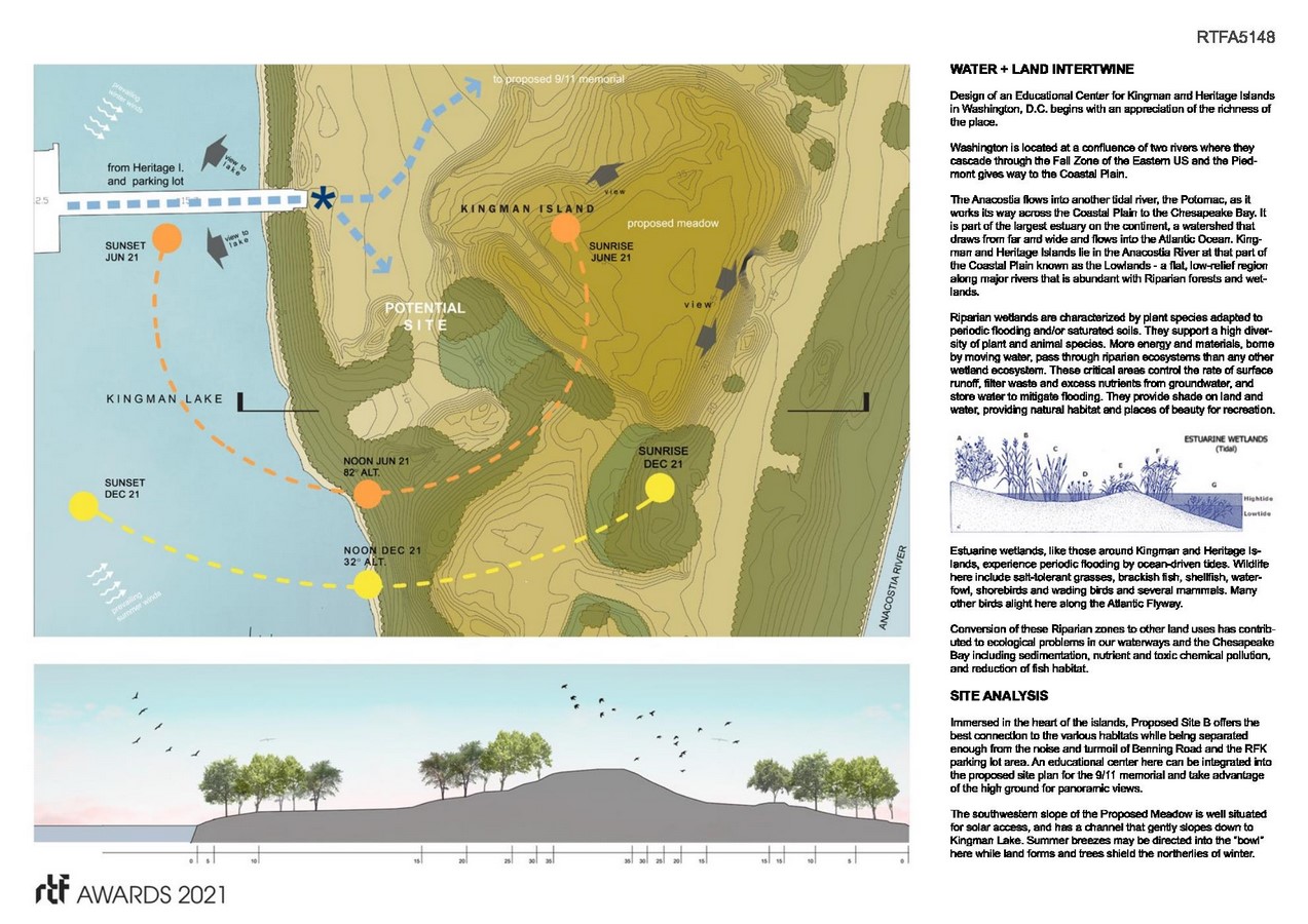 Design of an Educational Center for Kingman and Heritage Islands in Washington, D.C. begins with an appreciation of the richness of the place. Washington is located at a confluence of two rivers; the Anacostia and the Potomac.