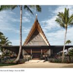 The architecture draws from Pacific Island traditions, blending vernacular forms with modern sustainable practices. Thatched rooflines—now made of recycled plastic rather than native leaves—nod to the past while reducing ecological impact. High-performance glazing, generous roof overhangs, and passive ventilation work in concert to minimize energy use, supported by on-site solar power, water reuse systems, and regionally sourced materials.