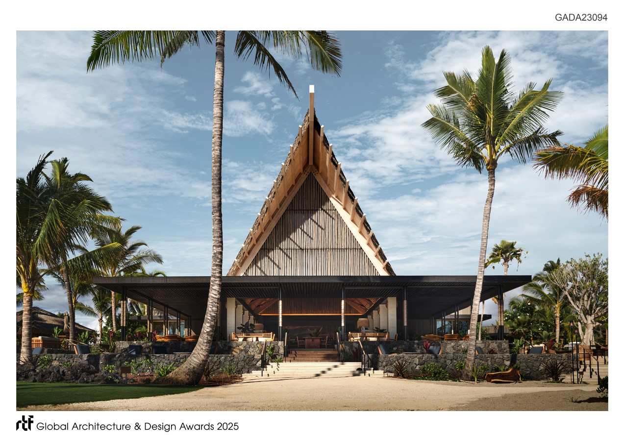 The architecture draws from Pacific Island traditions, blending vernacular forms with modern sustainable practices. Thatched rooflines—now made of recycled plastic rather than native leaves—nod to the past while reducing ecological impact. High-performance glazing, generous roof overhangs, and passive ventilation work in concert to minimize energy use, supported by on-site solar power, water reuse systems, and regionally sourced materials.