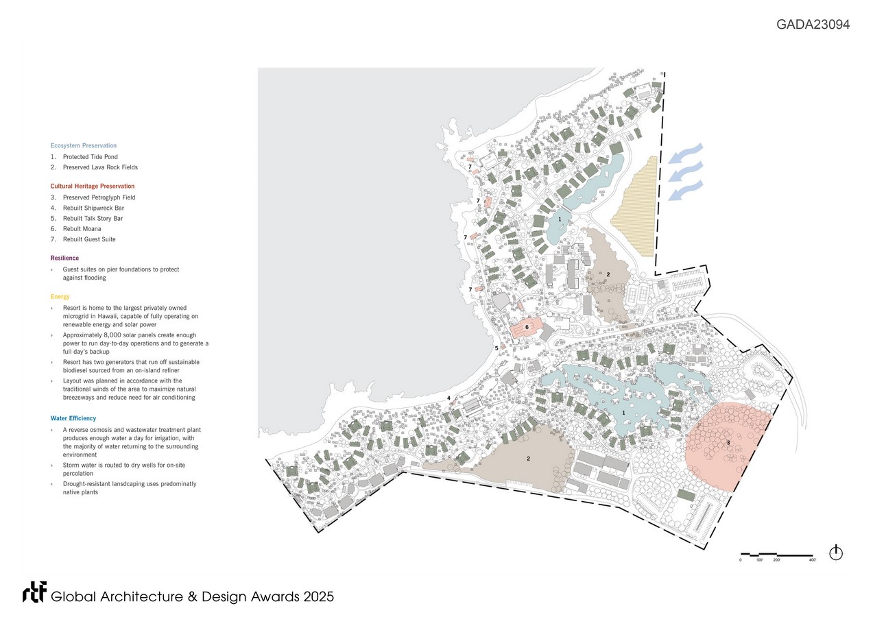 Located on the culturally significant lands of Kaʻūpūlehu on the Island of Hawaii, Kona Village has been thoughtfully reimagined after the original resort was destroyed by a tsunami in 2011. Guided by the client’s vision to preserve its legacy, the redevelopment honors the historic resort’s past while embracing contemporary environmental and cultural stewardship.