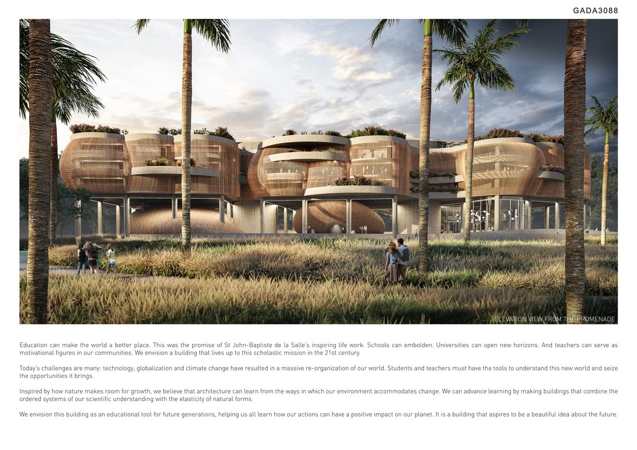 Education can make the world a better place. This was the promise of St John-Baptiste de la Salle’s inspiring life work. Universities can open new horizons. And teachers can serve as motivational figures in our communities. We envision a building that lives up to this scholastic mission in the 21st century.