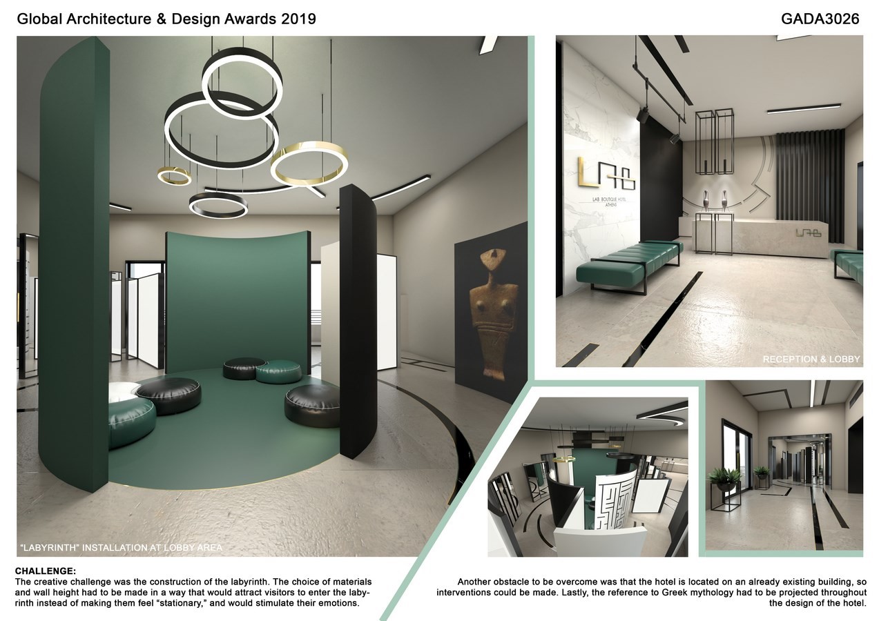 The concept borrowed its inspiration from Greek antiquity and the design of the Minoan palaces, as well as mythology, by implementing elements that are reminiscent of the Minotaur’s Labyrinth. The intricate construction of the Minoan palace of Knossos during the Neopalatial period (1700 BC) has been a semantic reference point for the construction of LAB Boutique Hotel.