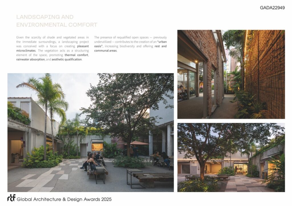 The presence of requalified open spaces — previously underutilized — contributes to the creation of an “urban oasis”, increasing biodiversity and offering rest and communal areas.