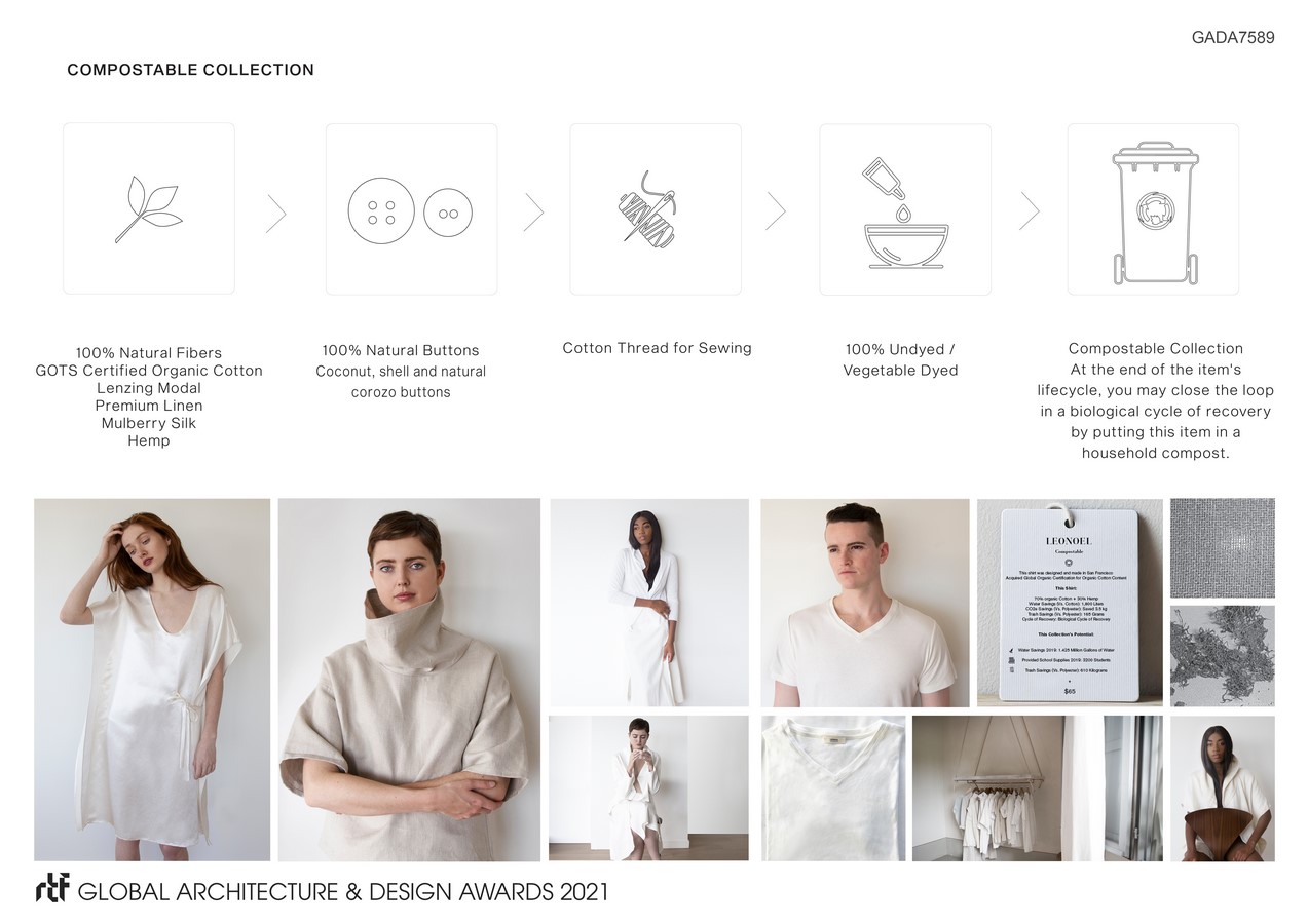 LEONOEL is a sustainable fashion brand based in San Francisco, merging design, technology, and science in reducing the environmental footprint of garments through their entire lifecycle. Leonoel consists of 100% compostable, biodegradable, and reclaimed collection of clothes.