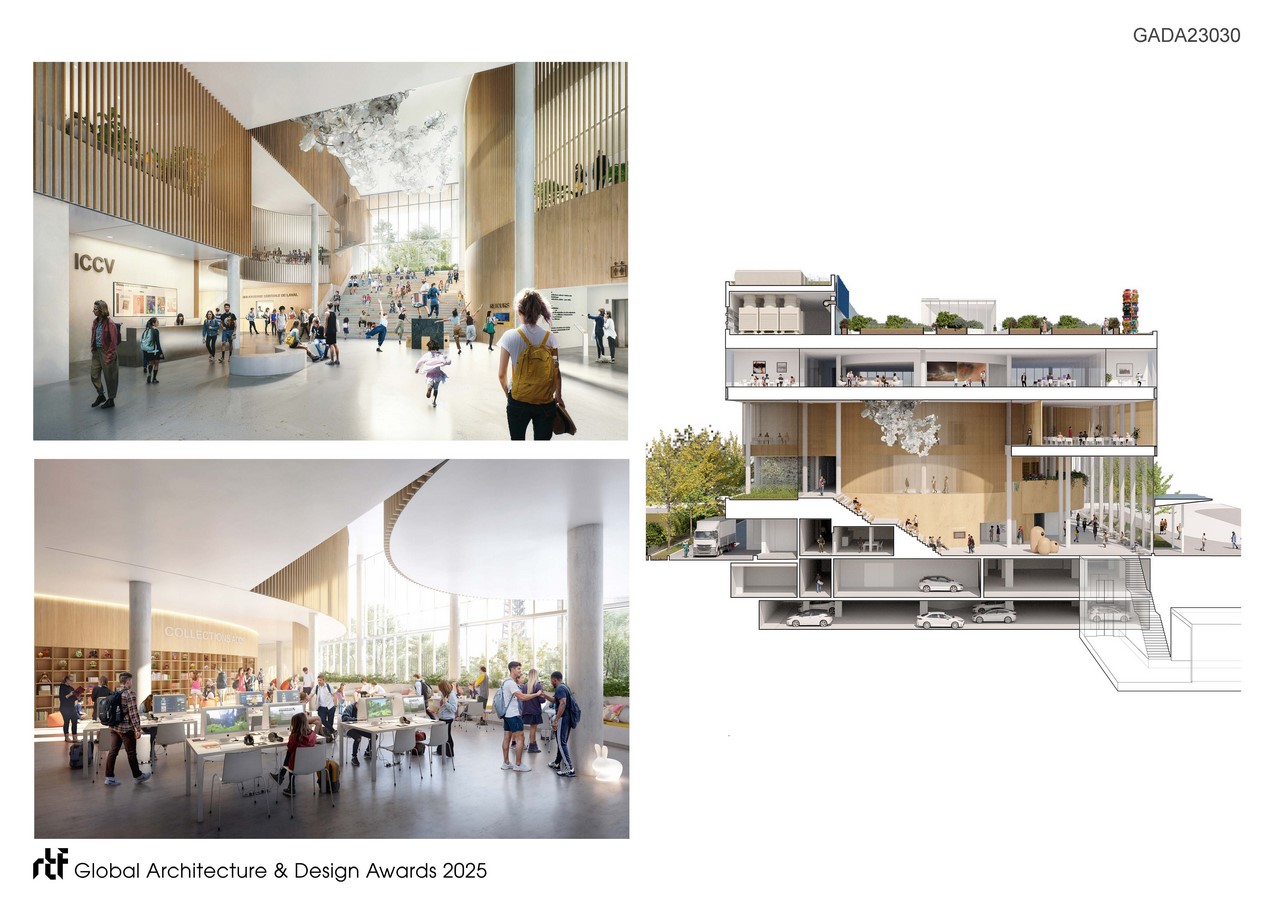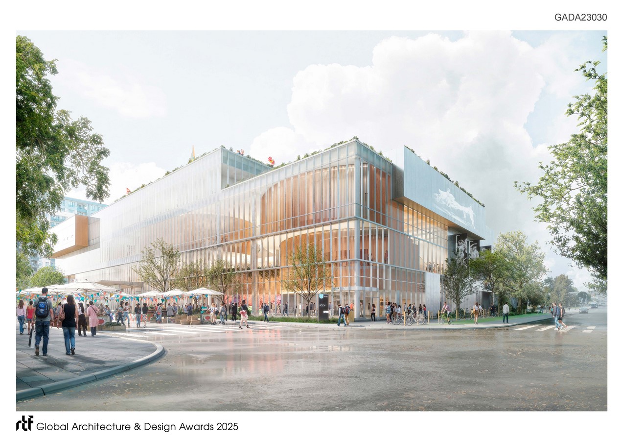 The architectural design engages in a compelling dialogue with the surrounding urban fabric, employing a spatial transparency strategy that highlights the venue’s rich cultural offerings.