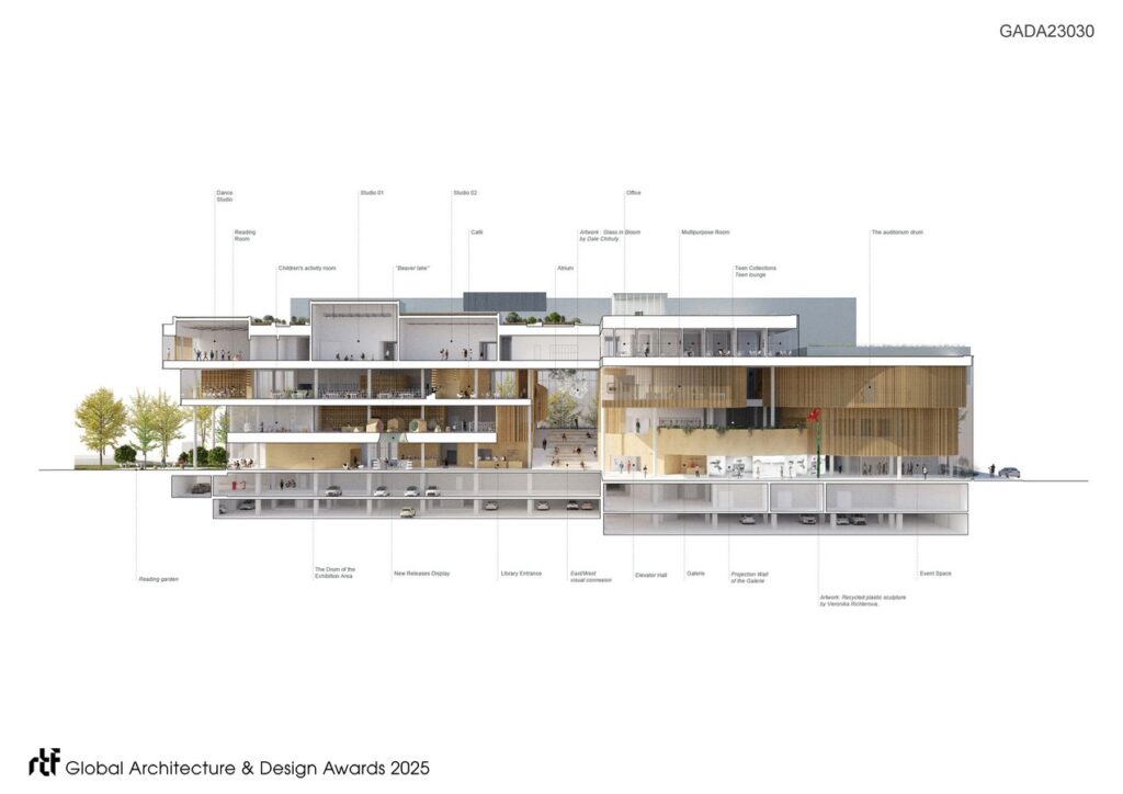 The architectural design engages in a compelling dialogue with the surrounding urban fabric, employing a spatial transparency strategy that highlights the venue’s rich cultural offerings.